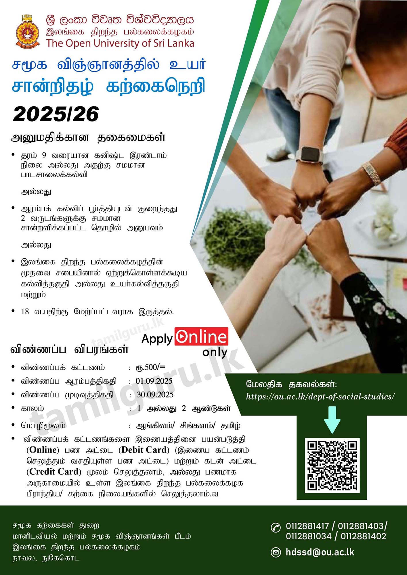 Calling Applications for Advanced Certificate in Social Sciences (Foundation Course) 2025/2026 Conducted by The Open University of Sri Lanka (OUSL)