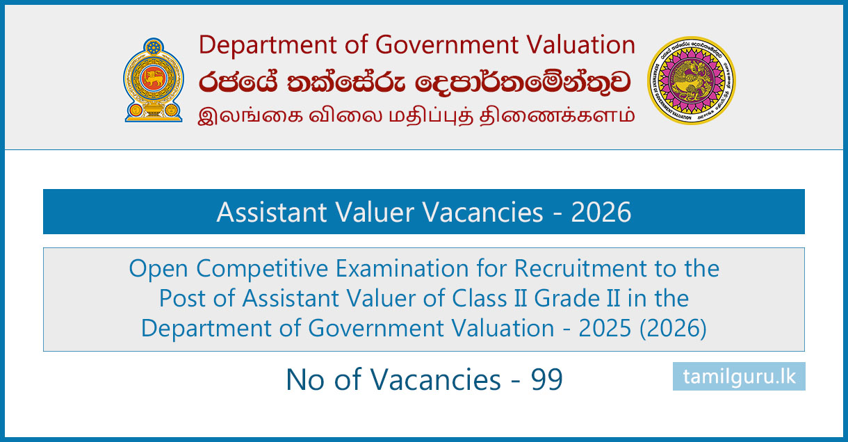 The Department of Government Valuation has called applications for the Open Competitive Examination for Recruitment to the Post of Assistant Valuer – Class II Grade II in the Department of Government Valuation 2025 (2026).