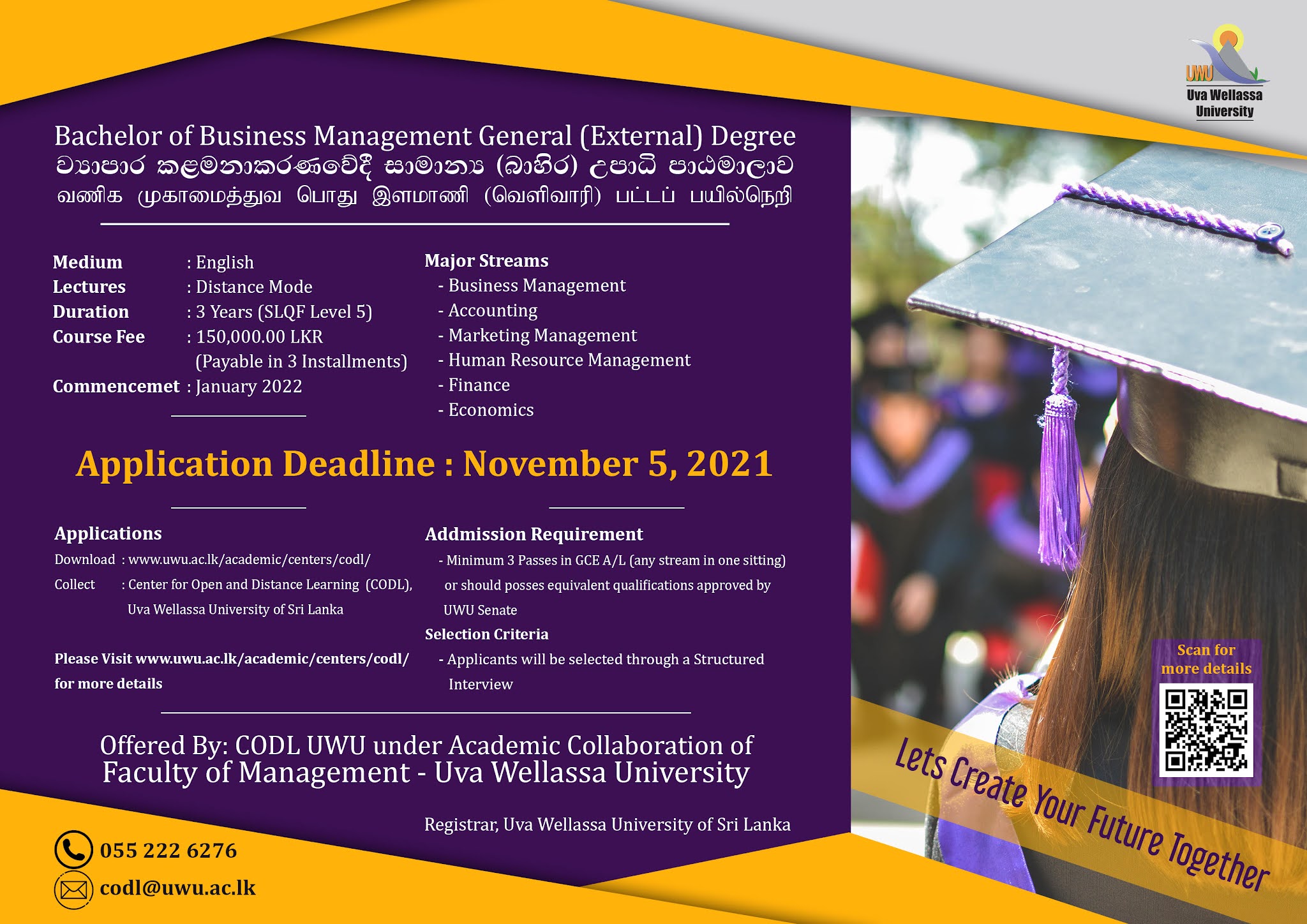 Quick Link : http://www.uwu.ac.lk/academic/centers/codl/