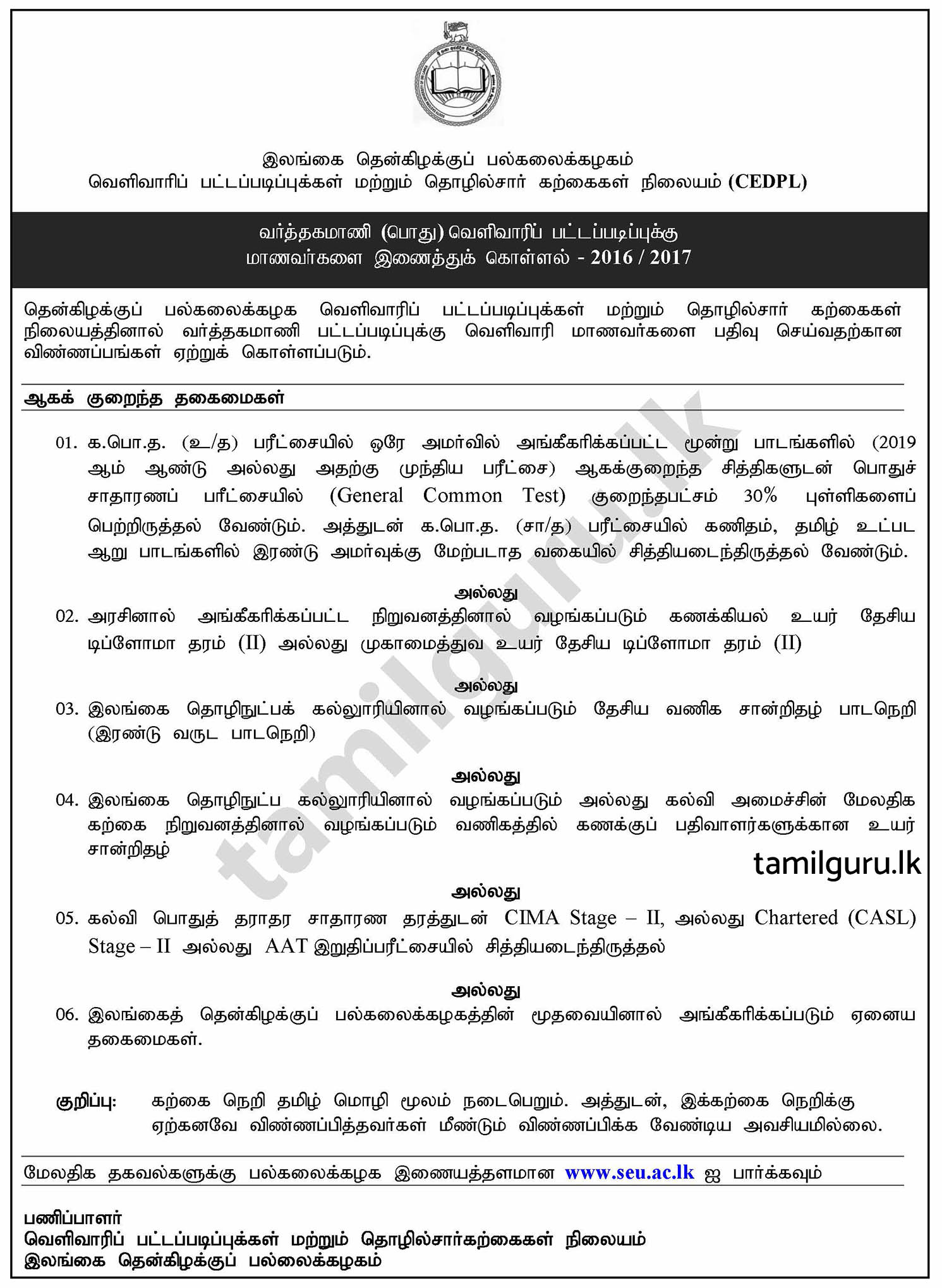 Bachelor of Commerce (B.COM) External Degree 2021 - South Eastern University of Sri Lanka (SEUSL) / வர்த்தகமாணி வெளிவாரி பட்டப்படிப்பு