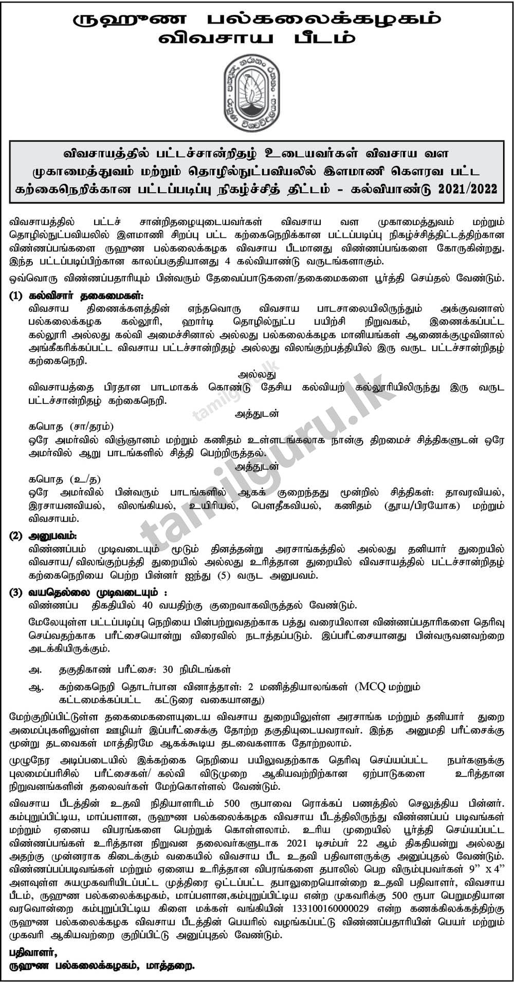 | University Website – https://www.agri.ruh.ac.lk |