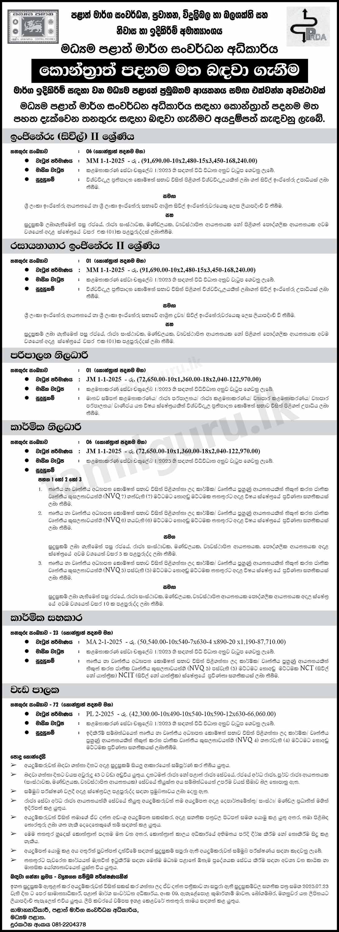 Central Provincial Road Development Authority Vacancies 2025