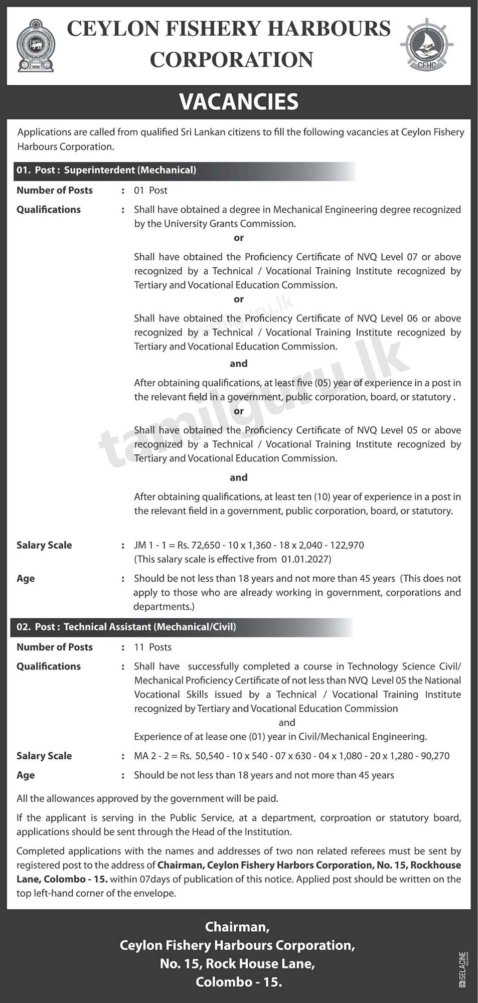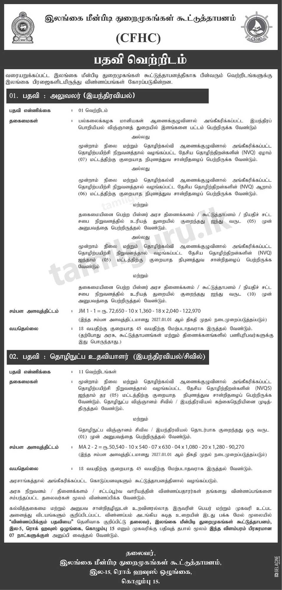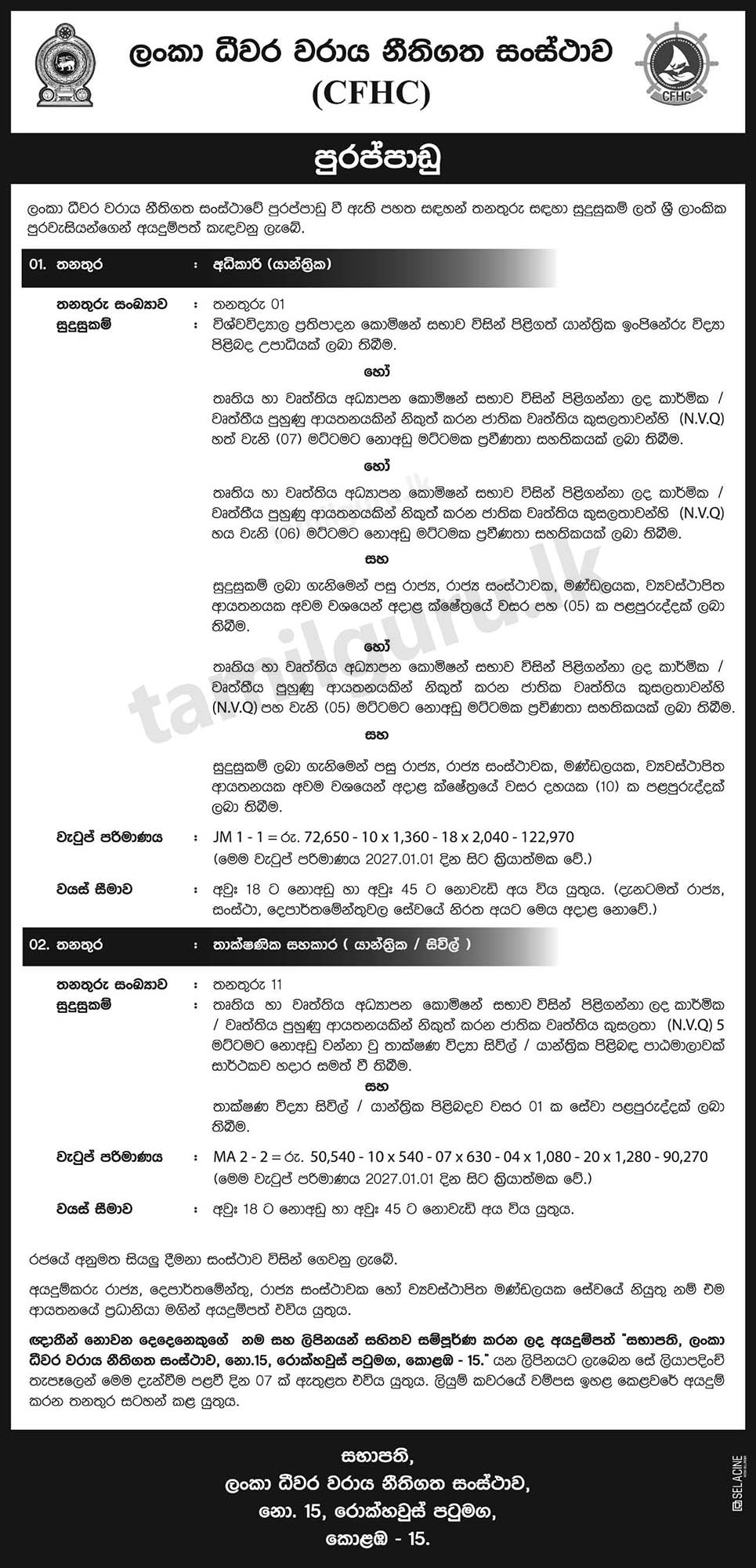Ceylon Fishery Harbors Corporation (CHFC) Job Vacancies 2026 March