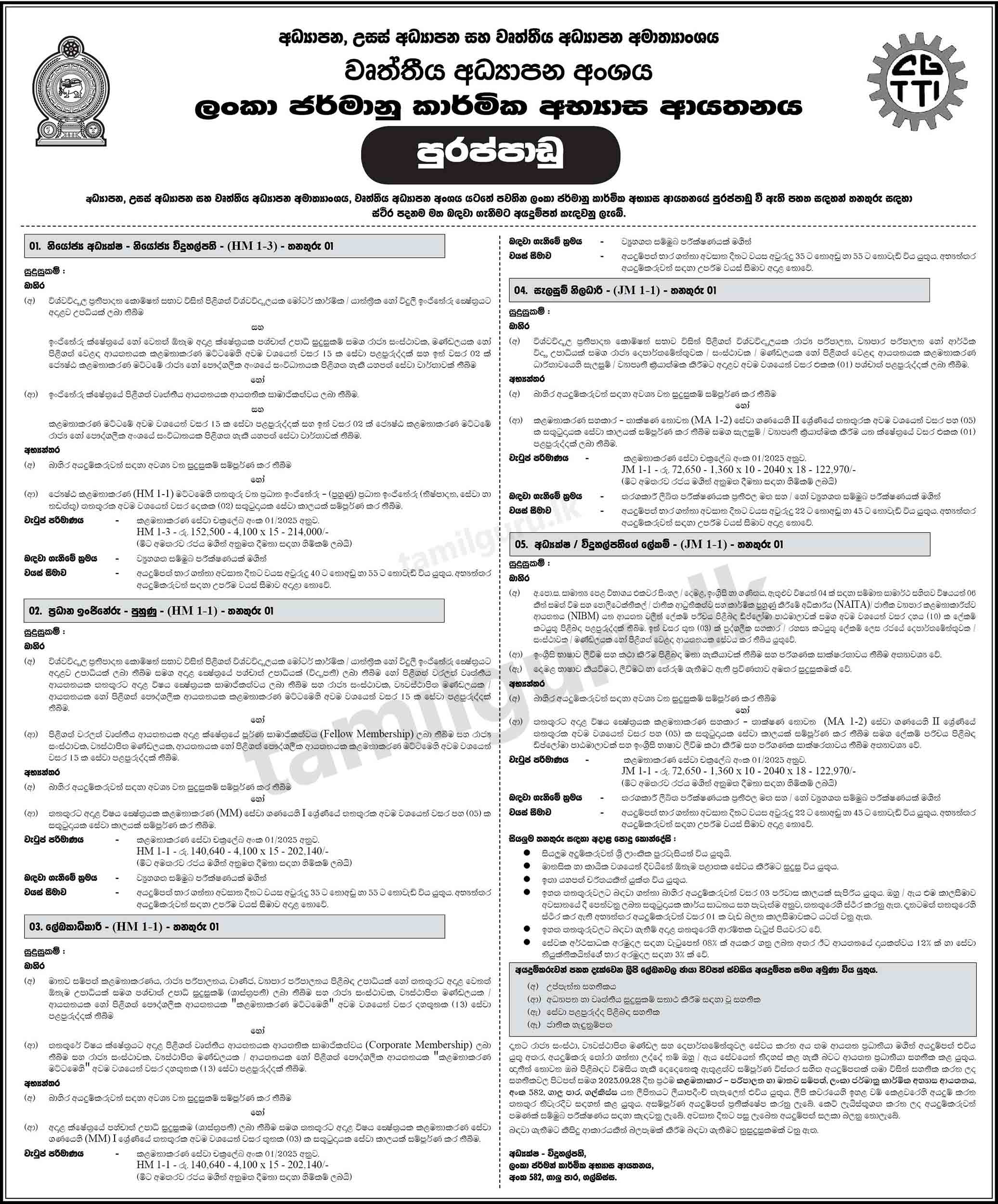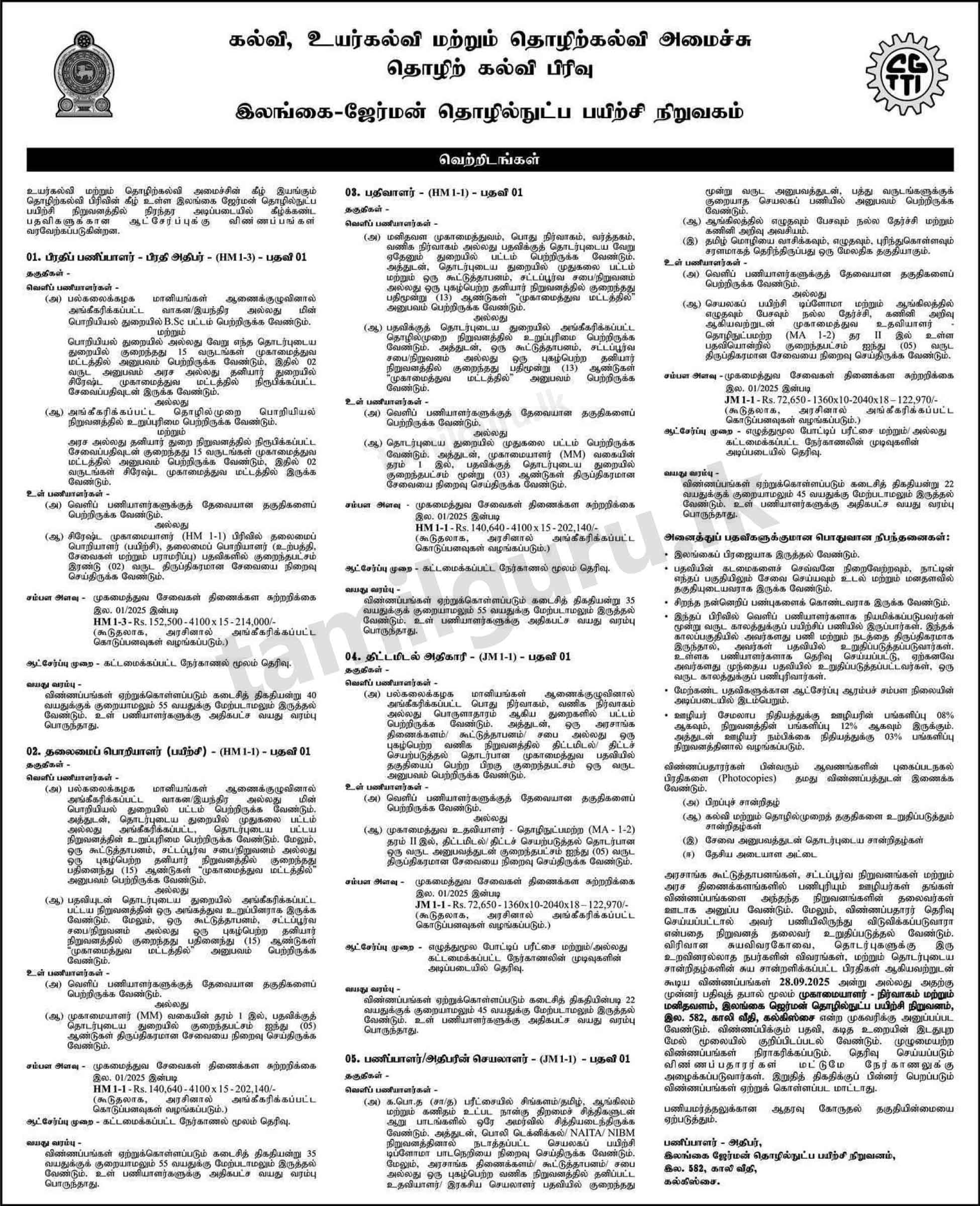 Job Vacancies at Ceylon German Technical Training Institute (CGTTI / German Tech) – 2025 September