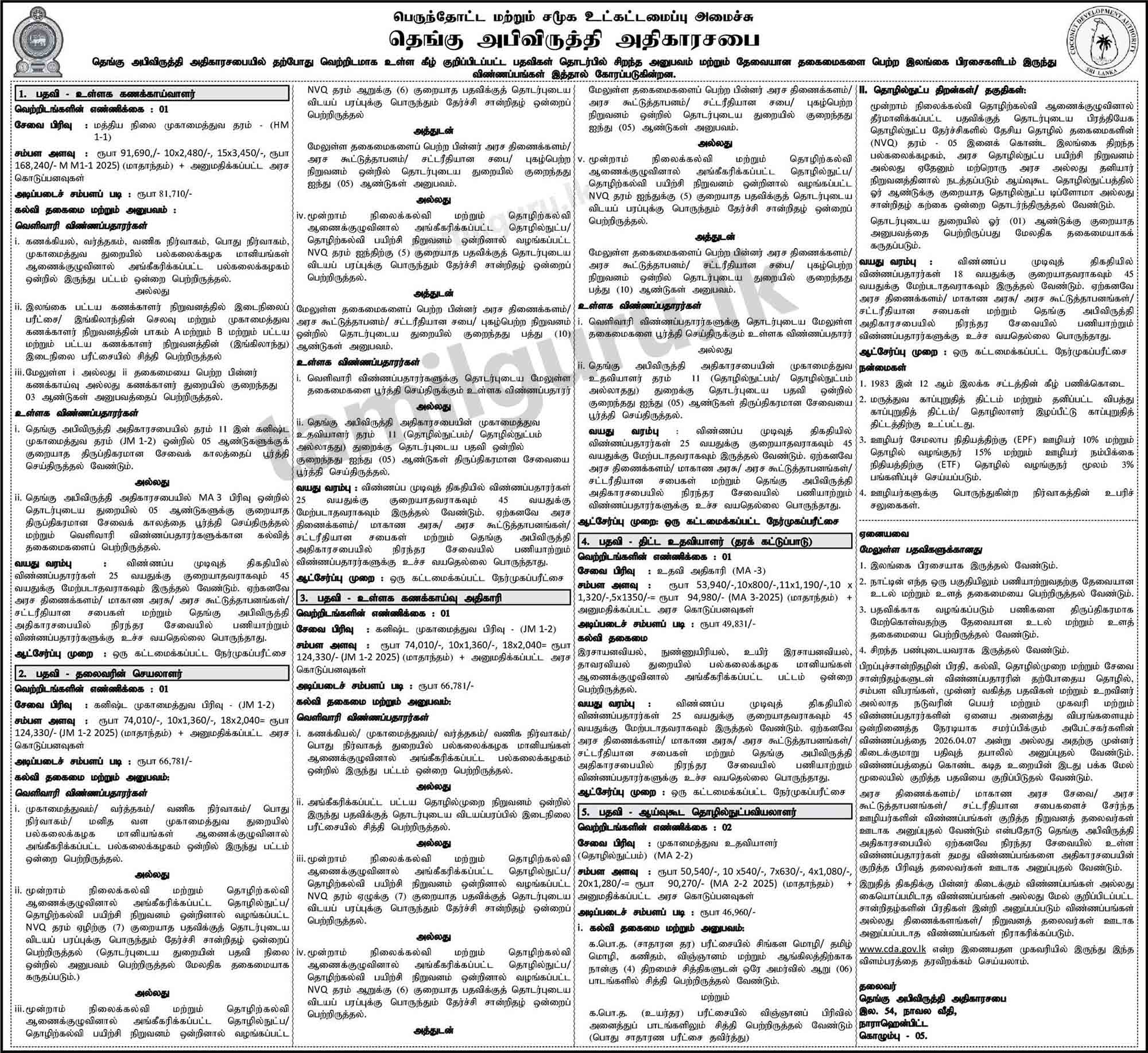 Coconut Development Authority (CDA) Vacancies – 2026 March