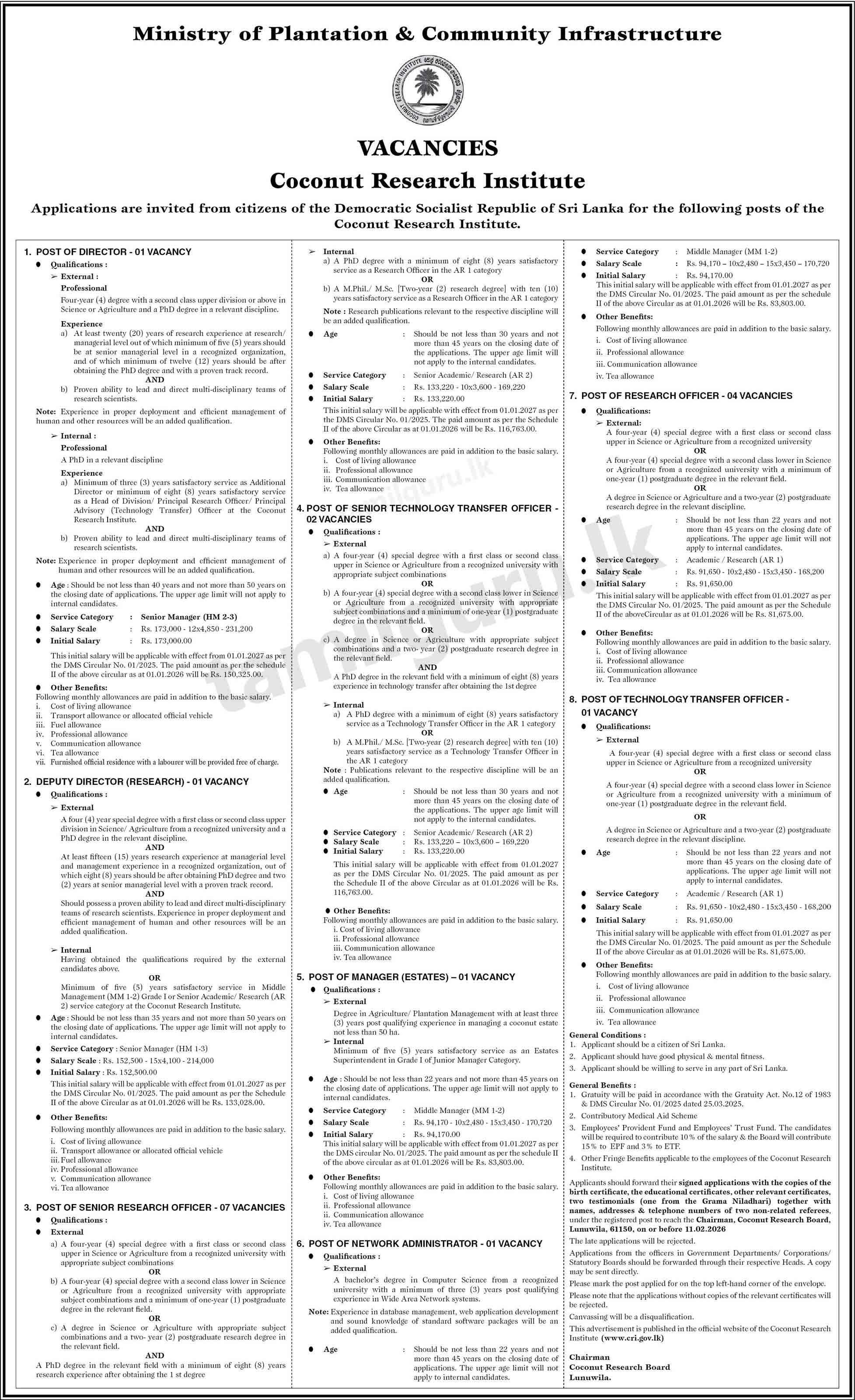 Job Vacancies at Coconut Research Institute (CRI) – 2026 February