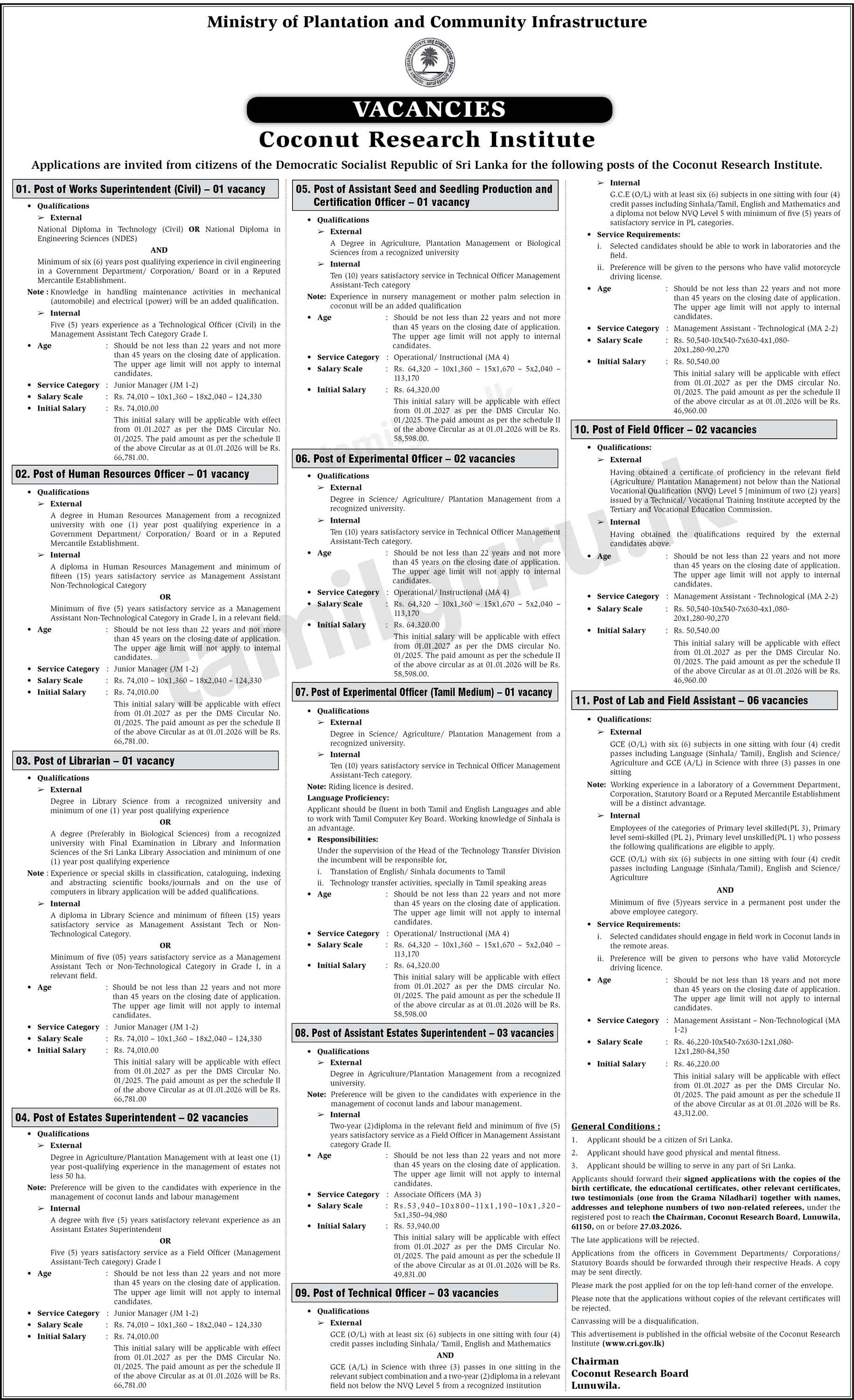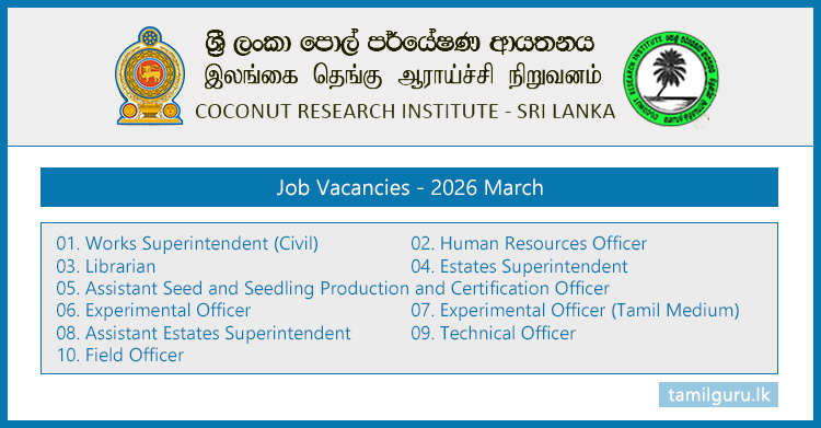 Job Vacancies at Coconut Research Institute (CRI) – 2026 March