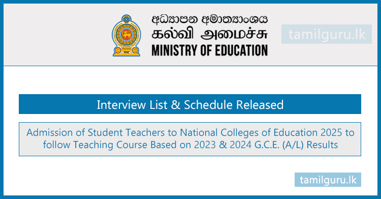 The Ministry of Education has released the interview list & schedule for the recruitment of student teachers to National Colleges of Education (2025 intake).