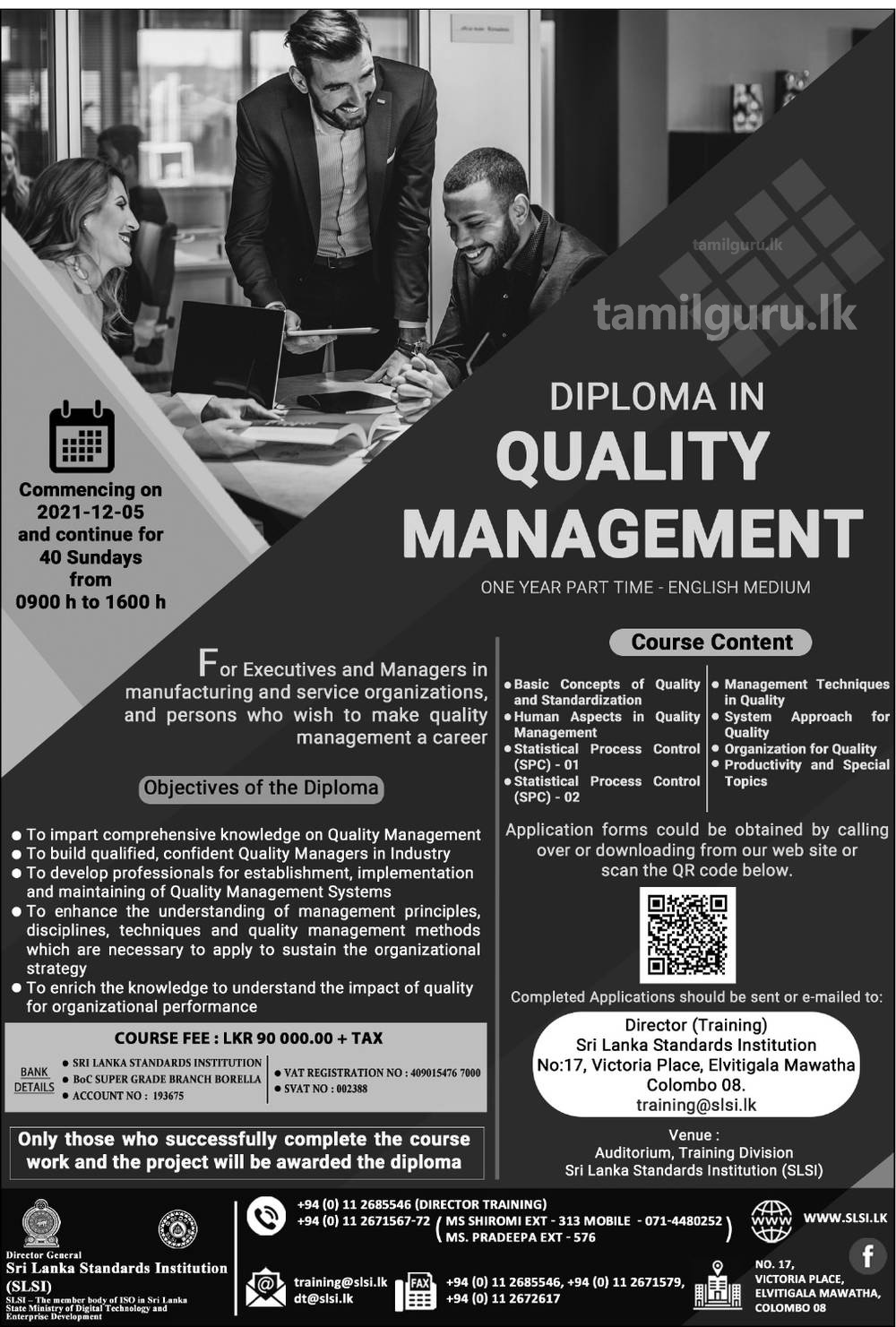 Calling Applications for Diploma in Quality Management 2021 (Part-Time Course)
