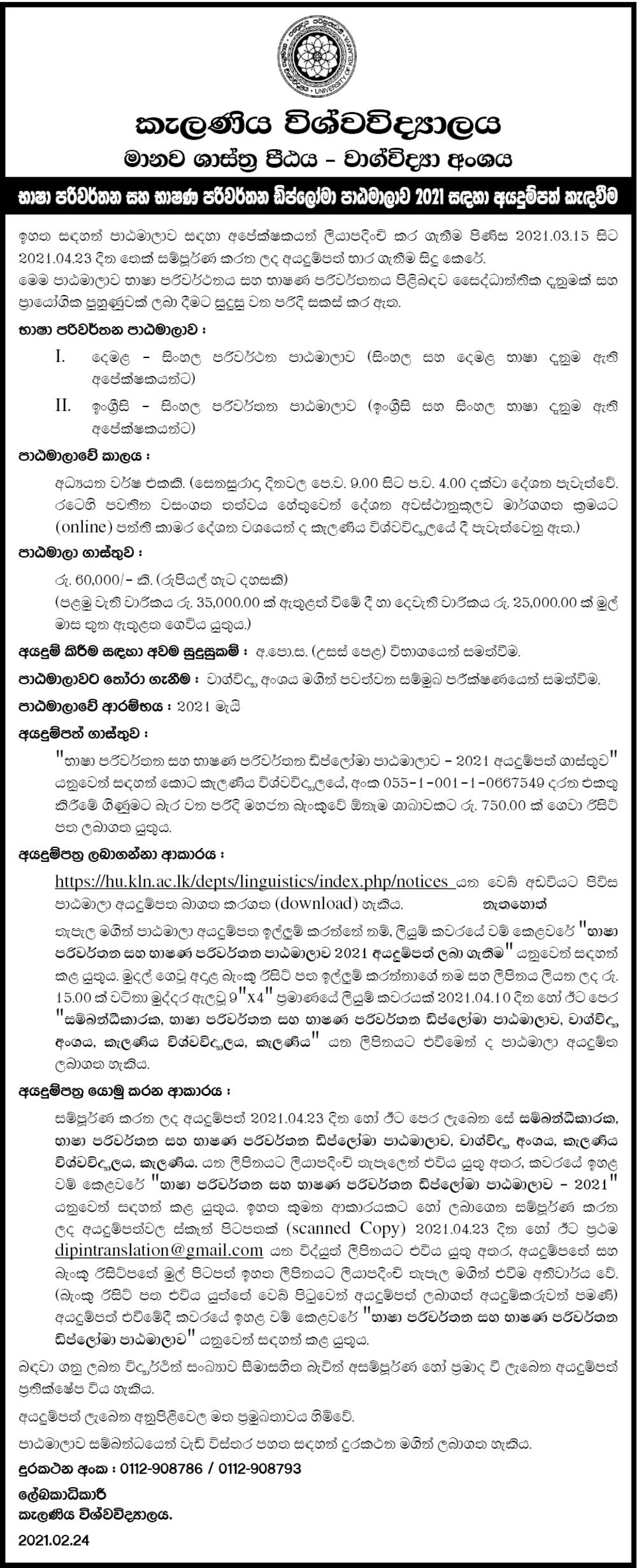 Quick Link : https://hu.kln.ac.lk/depts/linguistics/index.php/notices
