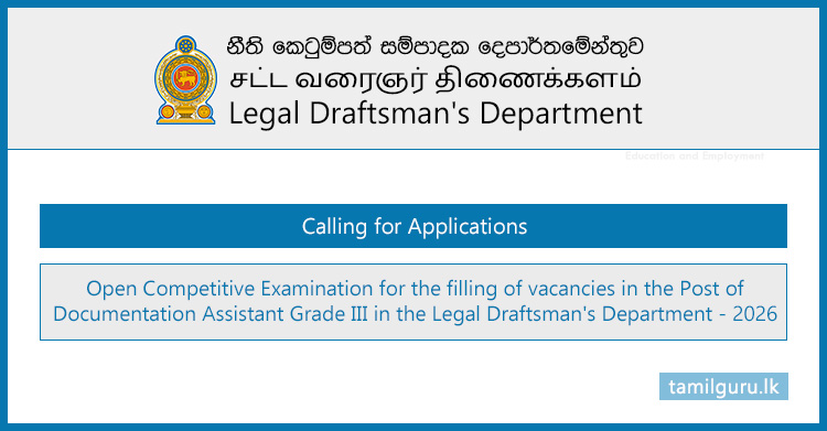 Calling for Applications – Open Competitive Examination for the filling of vacancies in the Post of Documentation Assistant Grade III in the Legal Draftsman’s Department – 2026