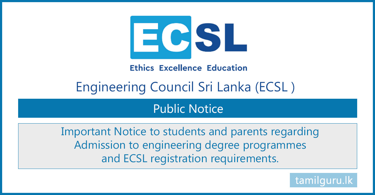 The Engineering Council Sri Lanka (ECSL) has issued an important public notice for prospective students and parents regarding admission to Engineering Degree Programmes in Sri Lanka.