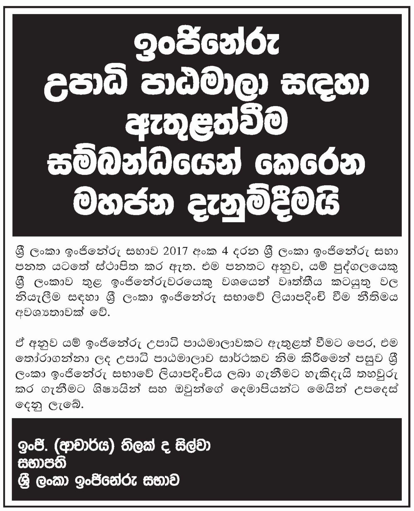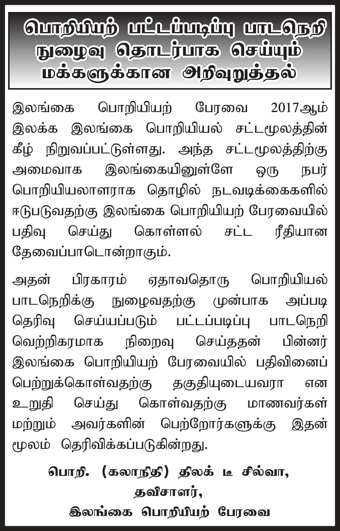 | Paper Notice (AD) | English | Sinhala | Tamil |