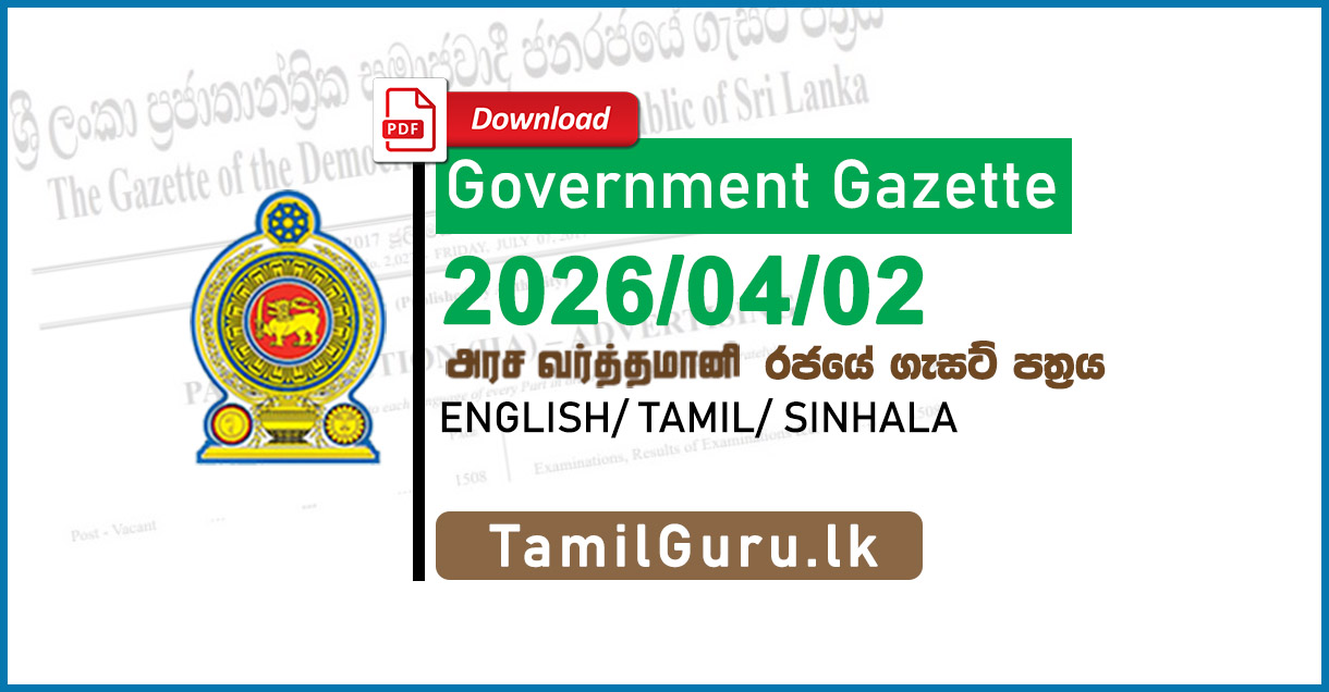 Government Gazette 2026 April 02 (2026.04.02) in Sinhala, Tamil, English
