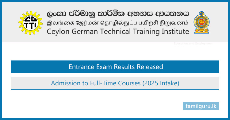 Entrance Examination for Admission to Full-Time Courses (2025 Intake) Conducted by Ceylon German Technical Training Institute (German Tech / CGTTI)