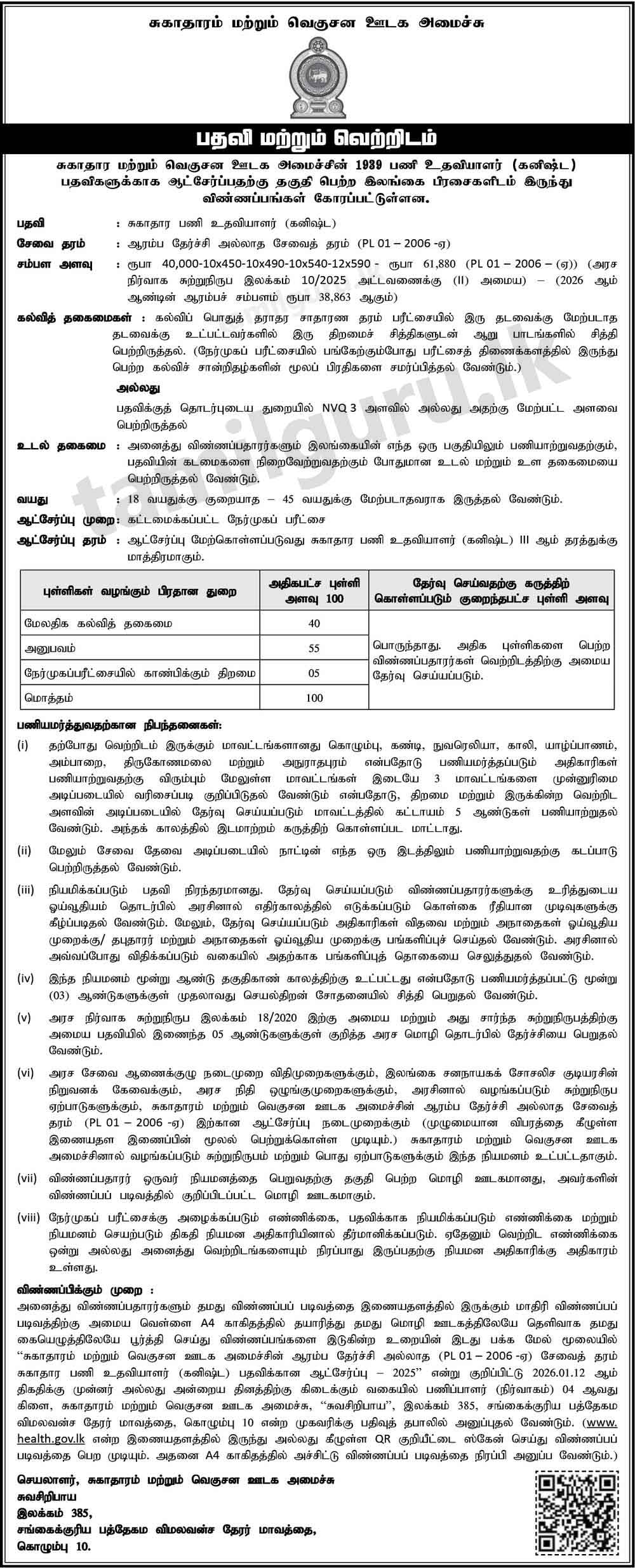 Calling Applications for Recruitment to the Post of Health Service Aid (Junior) Grade III of the Ministry of Health and Mass Media.
