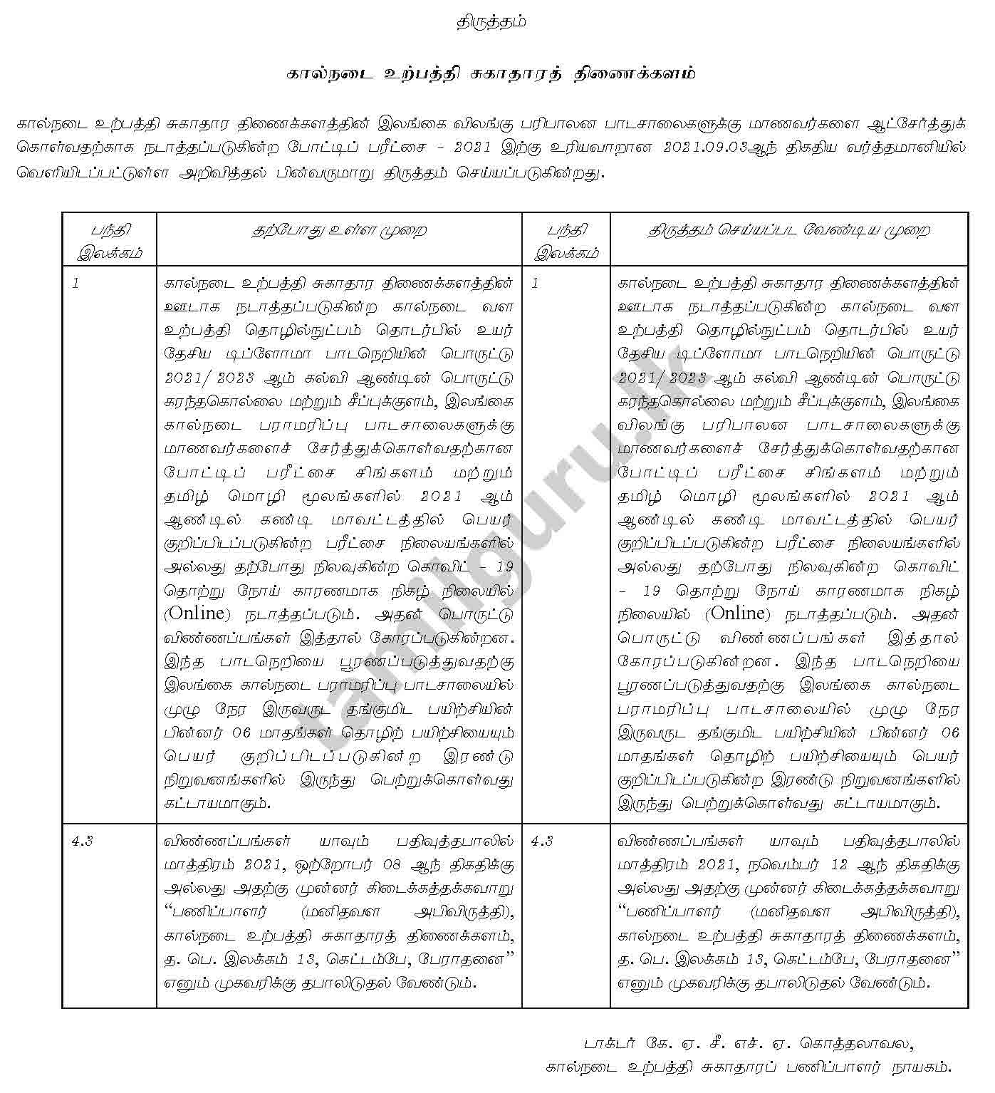 | Amendment Notice – Tamil – View – Sinhala – Pending – English – Pending |