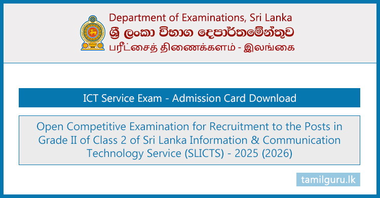 The Department of Examinations has announced that the Admission Cards for the Open Competitive Examination for Recruitment to Grade II of Class 2 of the Sri Lanka Information and Communication Technology Service – 2025 (2026) have been released online.