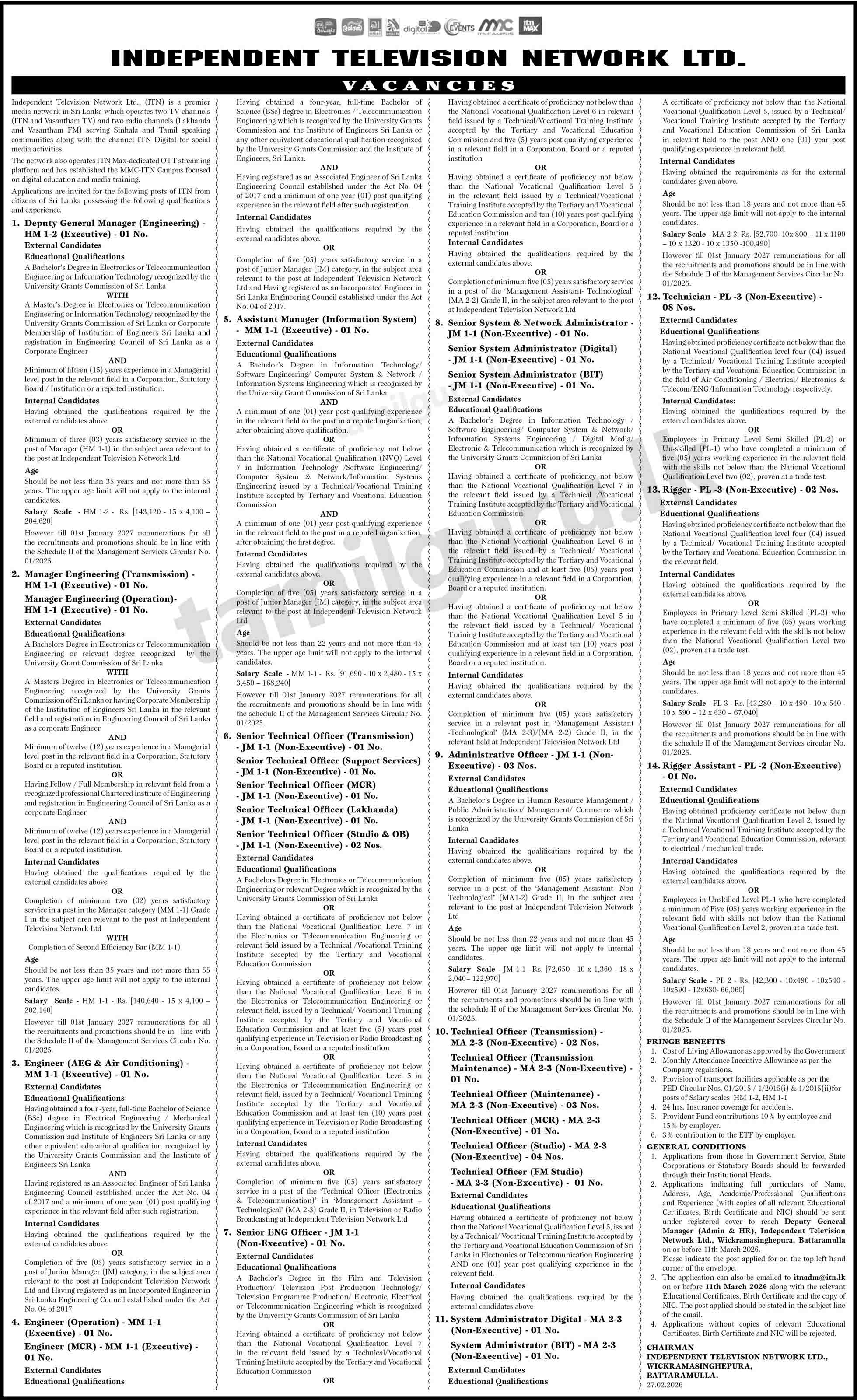 Independent Television Network (ITN) Job Vacancies 2026 March