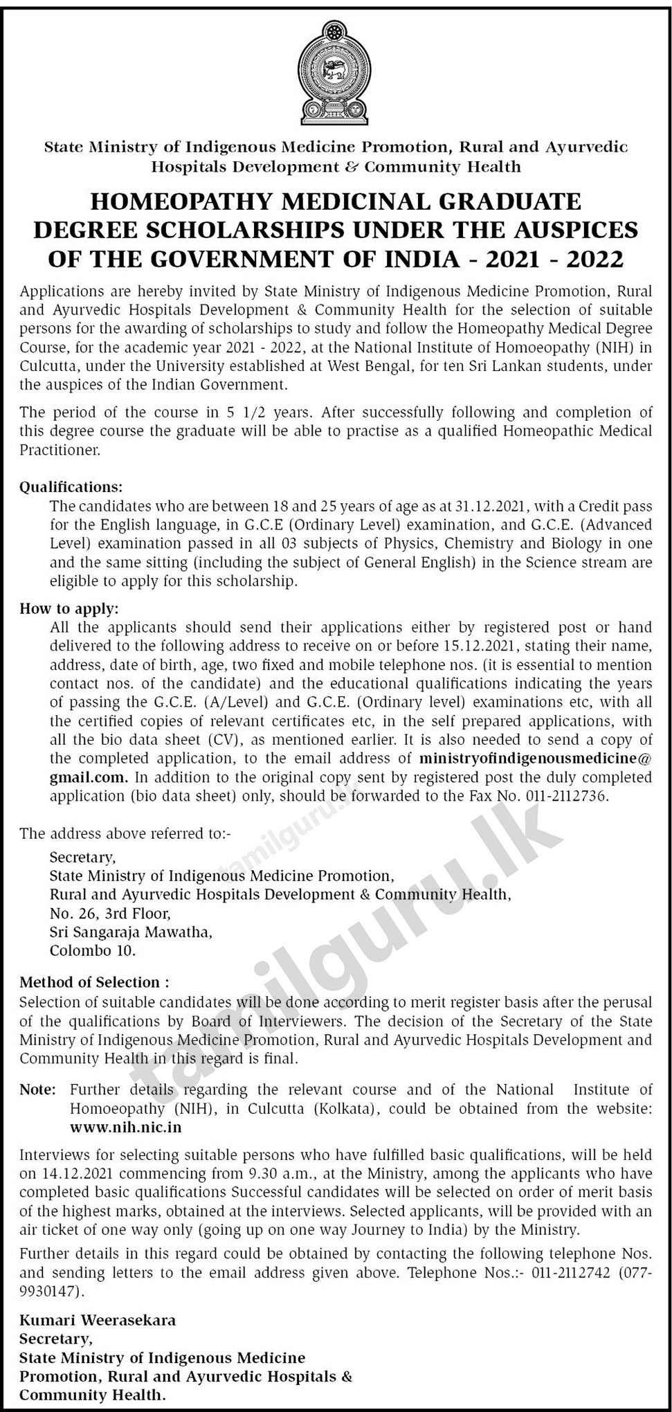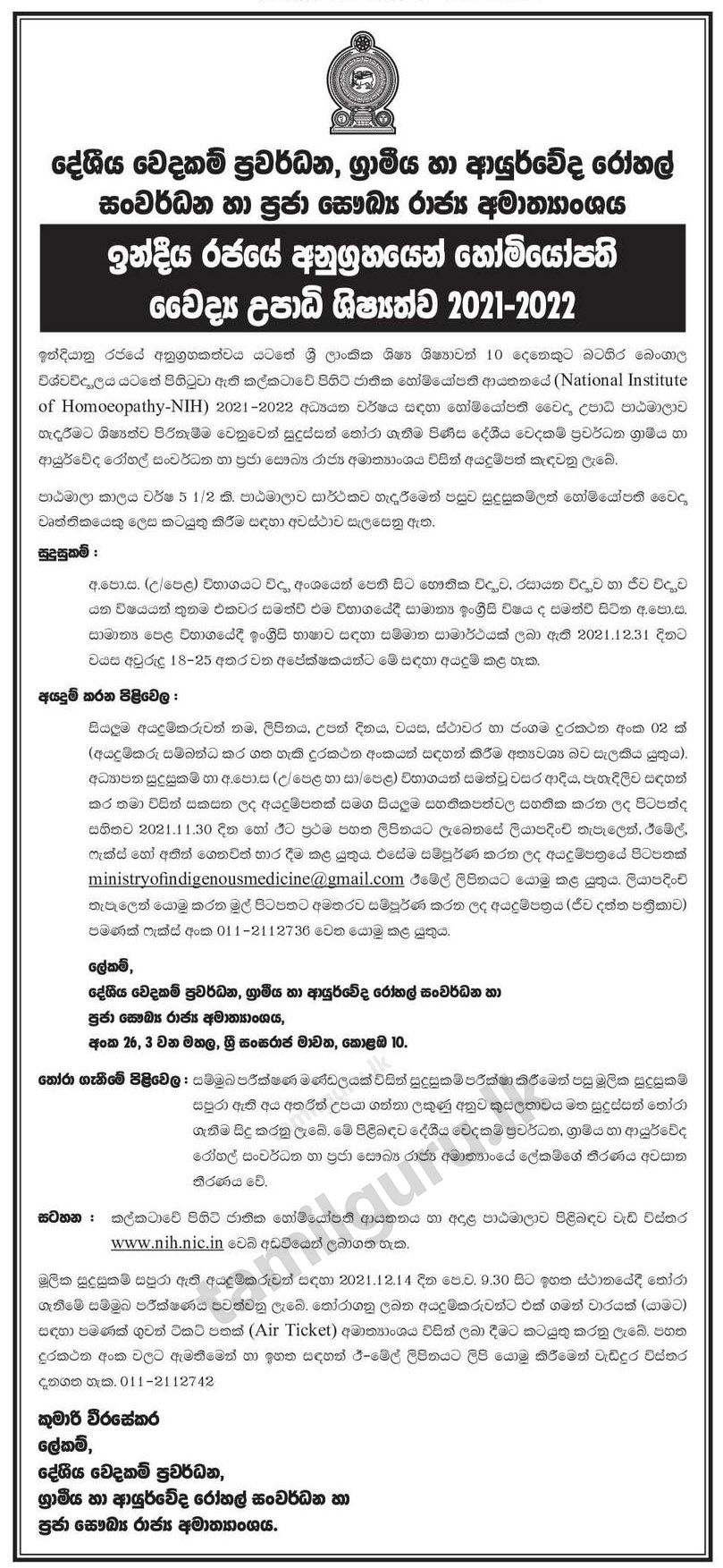 Calling Applications for Homeopathy Medicinal Graduate Degree Scholarships Under the Auspices of the Government of India 2021 – 2022
