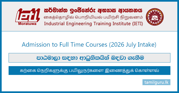 Applications are now open for Full-Time Technical Courses at the Industrial Engineering Training Institute (IETI), Moratuwa, for the July 2026 intake.