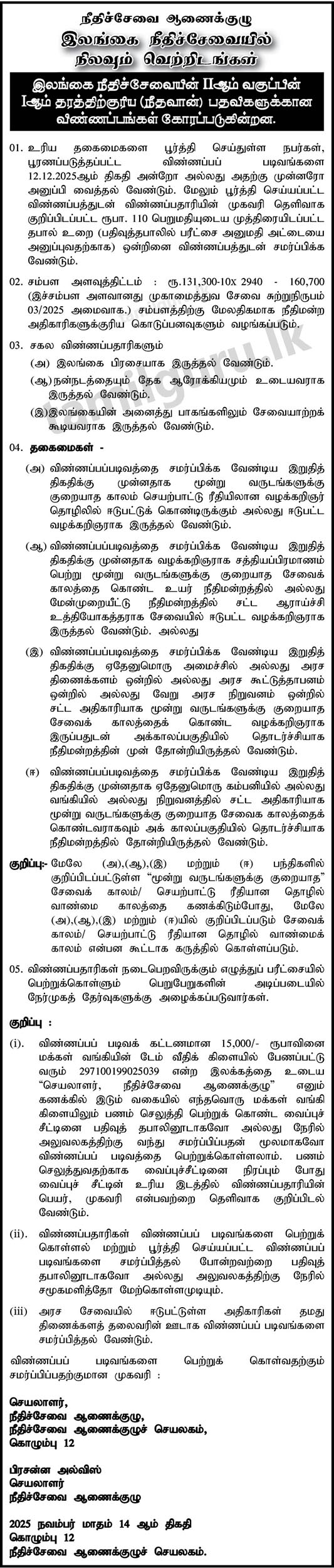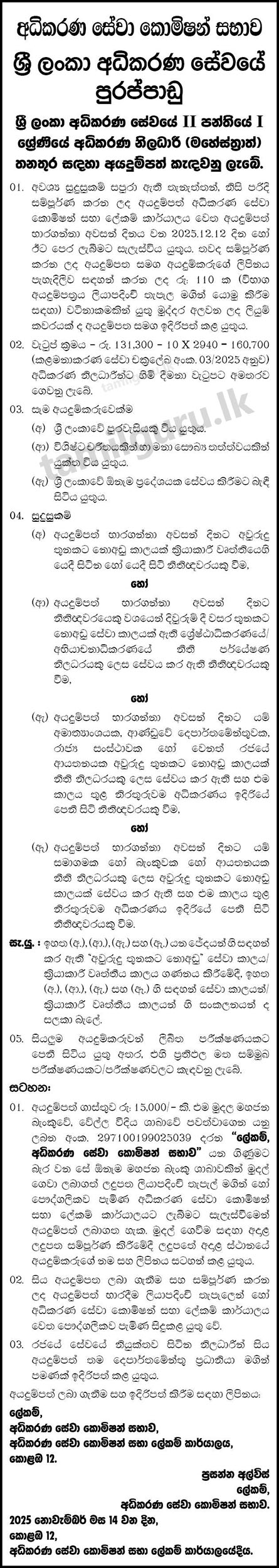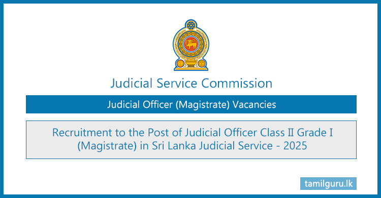 Applications are Invited for Recruitment to the Post of Judicial Officer Class II Grade I (Magistrate) in Sri Lanka Judicial Service – Judicial Service Commission