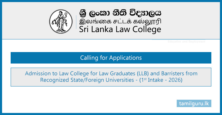 Admission to Sri Lanka Law College (SLLC) for Law Graduates (LLB) from Recognized State/Foreign Universities and Barristers – 2026 (01st Intake)