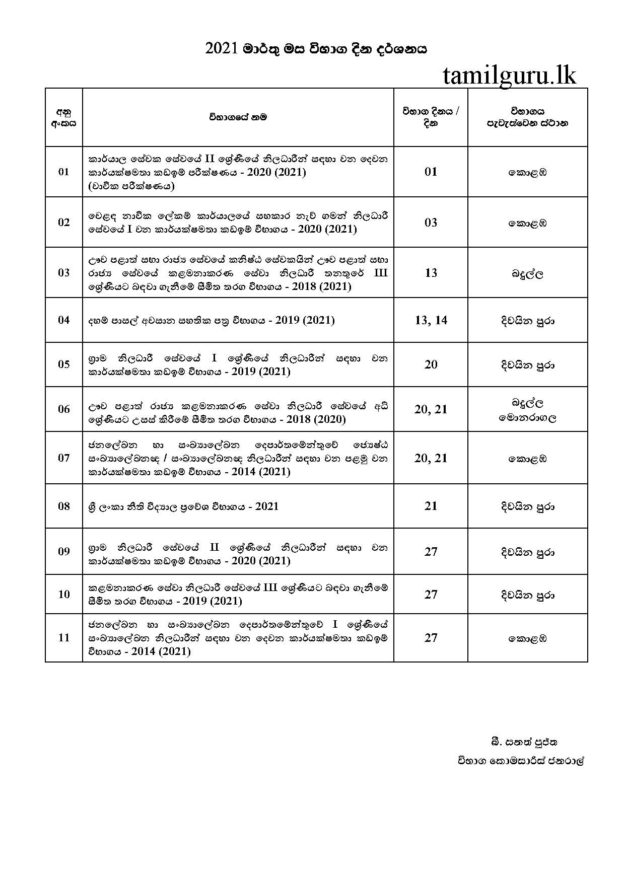 2021 மார்ச் மாதத்திற்கான அரச பரீட்சை நாட்காட்டி