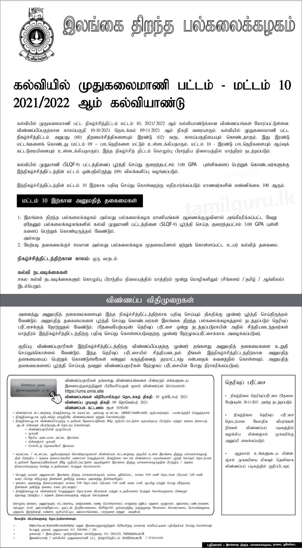Conducted by the Open University of Sri Lanka