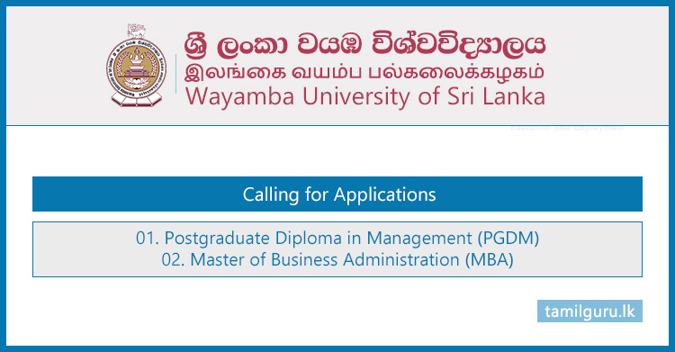 Calling Applications for Master of Business Administration (MBA) Programme Intake 2026 Conducted by the Wayamba University of Sri Lanka (WUSL)