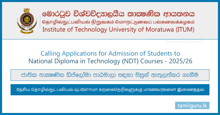 Admission to National Diploma in Technology (NDT) Courses 2025/26 – University of Moratuwa (ITUM)