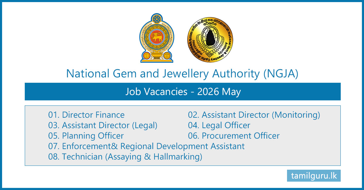 The National Gem & Jewellery Authority (NGJA), under the Ministry of Industries and Entrepreneurship Development, has invited applications from qualified and experienced Sri Lankan citizens for several vacancies in 2026.