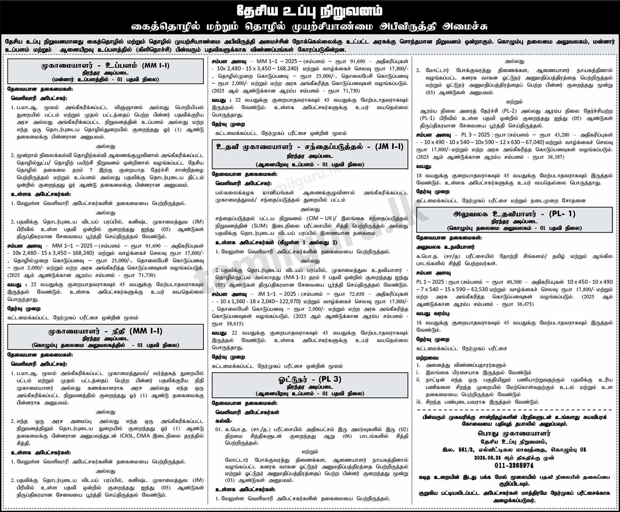 National Salt Vacancies (August 2025) - Posts of Office Aide, Driver, Manager