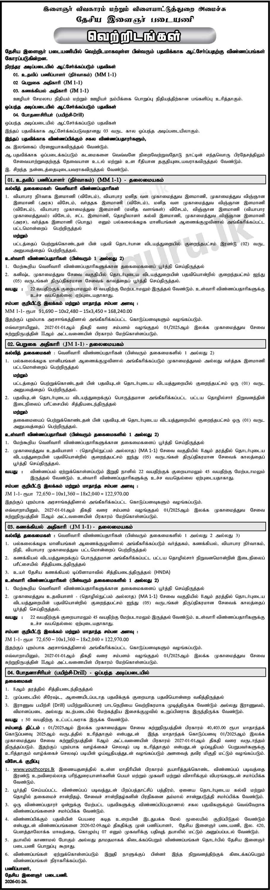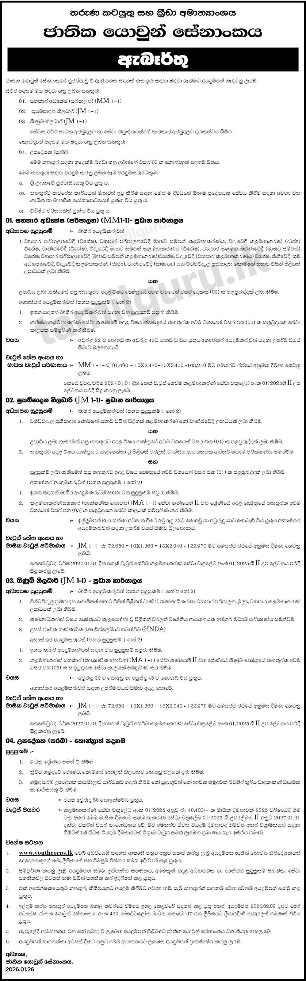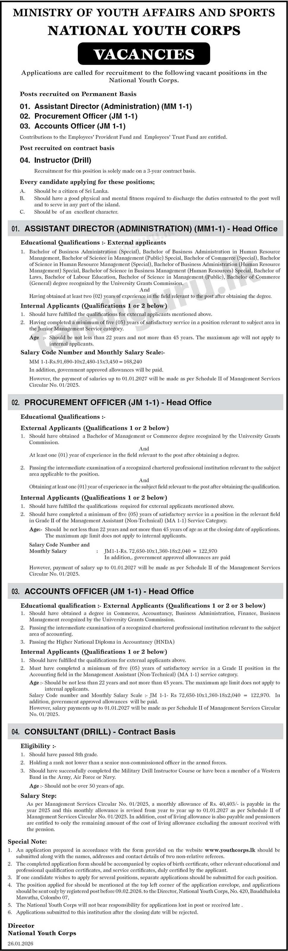 Job Vacancies at National Youth Corps, Ministry of Youth Affairs and Sports – 2026 February