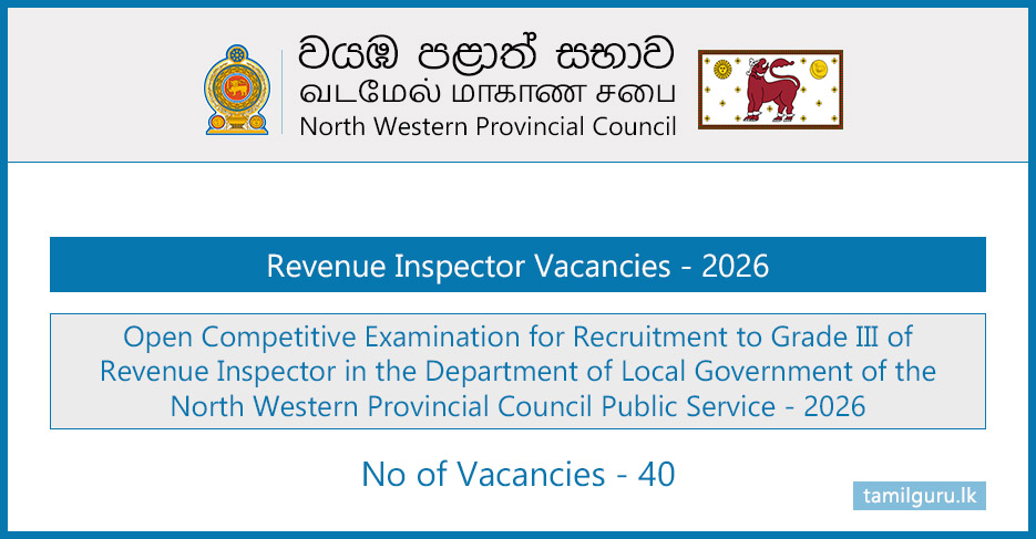 Calling for Applications – Open Competitive Examination for Recruitment to Grade III of Revenue Inspector in the Department of Local Government of the North Western Provincial Council Public Service – 2026