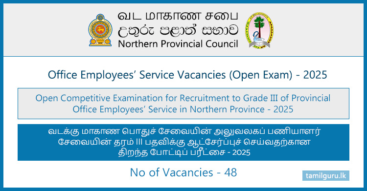 Calling for Applications – Open Competitive Examination for Recruitment to Grade III of Provincial Office Employees’ Service in Northern Province – 2025