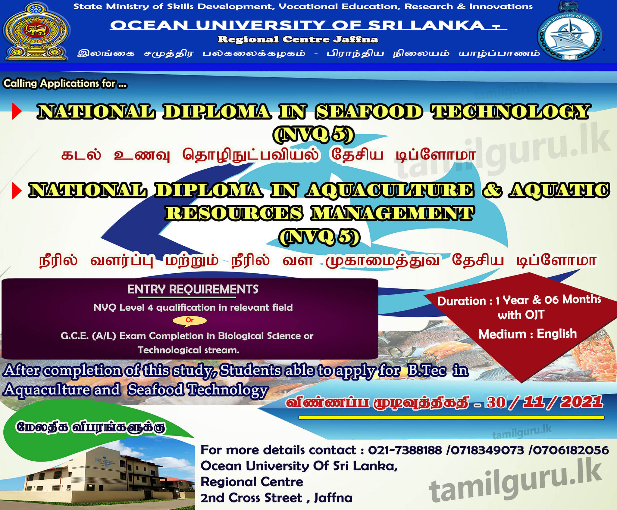Calling Applications for Diploma Courses at Ocean University of Sri Lanka (OCUSL) – Jaffna Regional Center – 2021