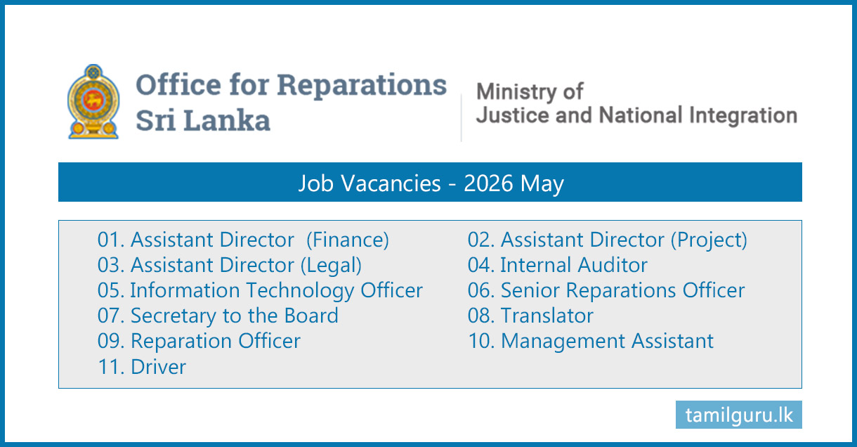 📬 How to Apply: Completed applications with copies of all relevant certificates must be submitted by registered post to: Director General / CEO Office for Reparations, No. 40, 01st Floor, Buthgamuwa Road, Rajagiriya, on or before 08th May 2026.