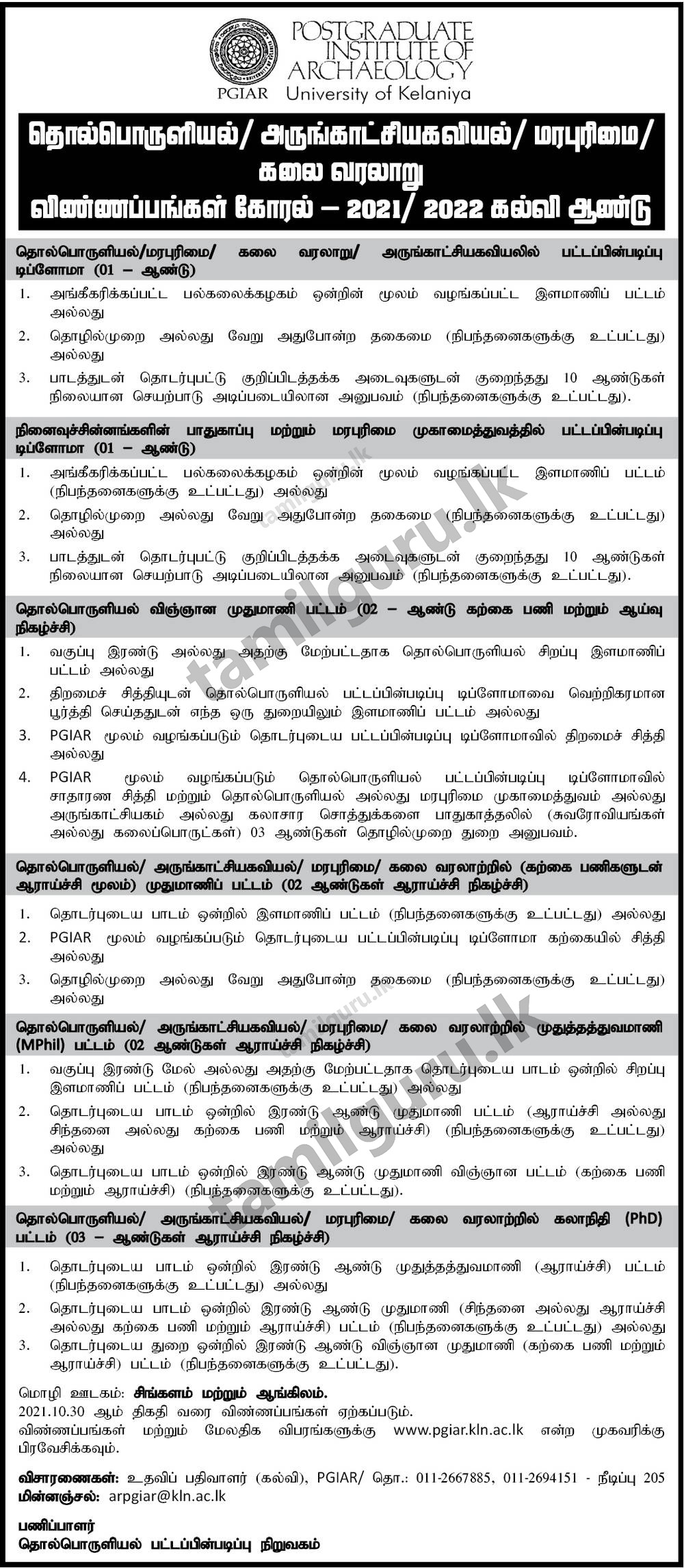Postgraduate Institute of Archaeology (PGIAR) Courses 2021 – University of Kelaniya
