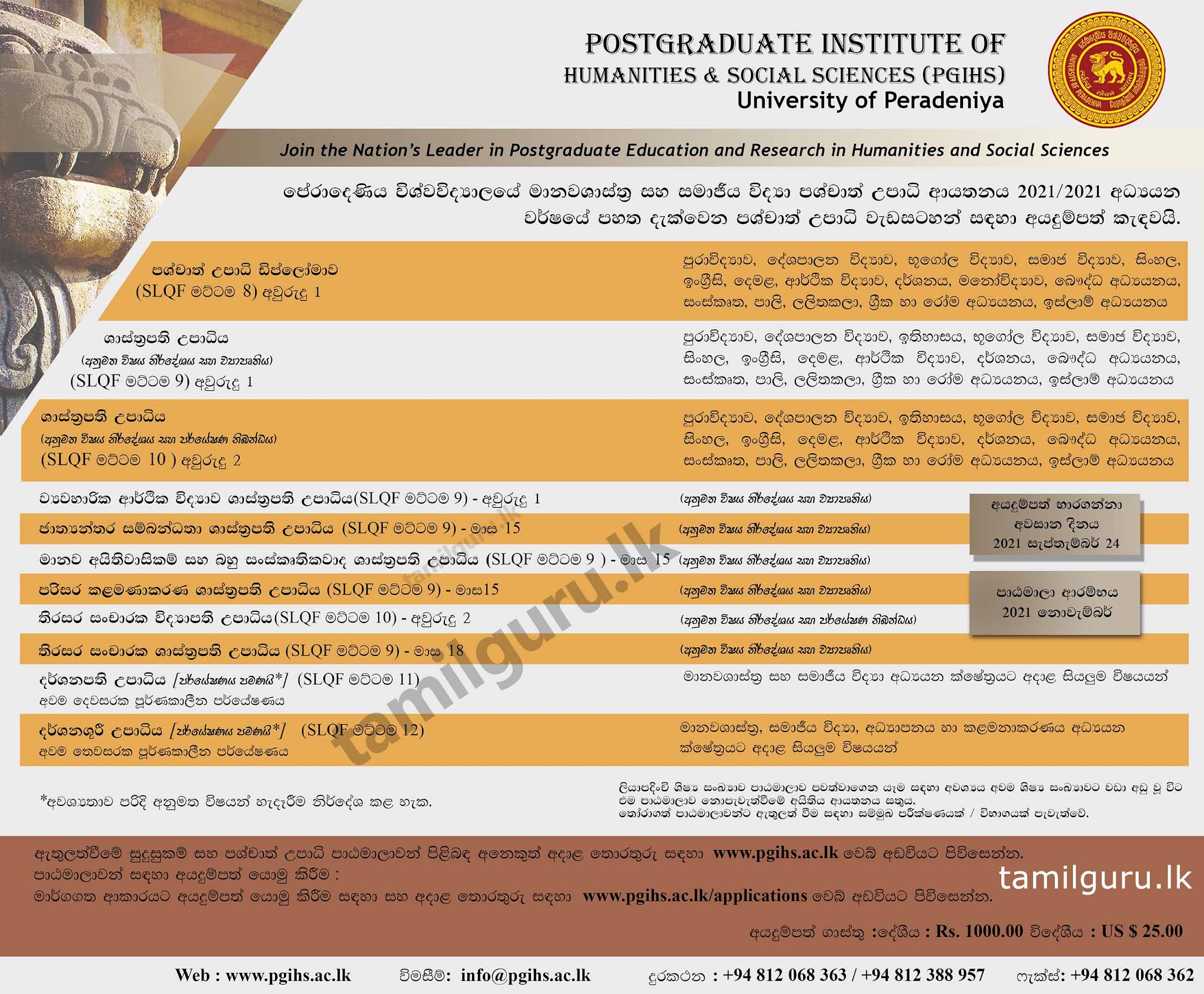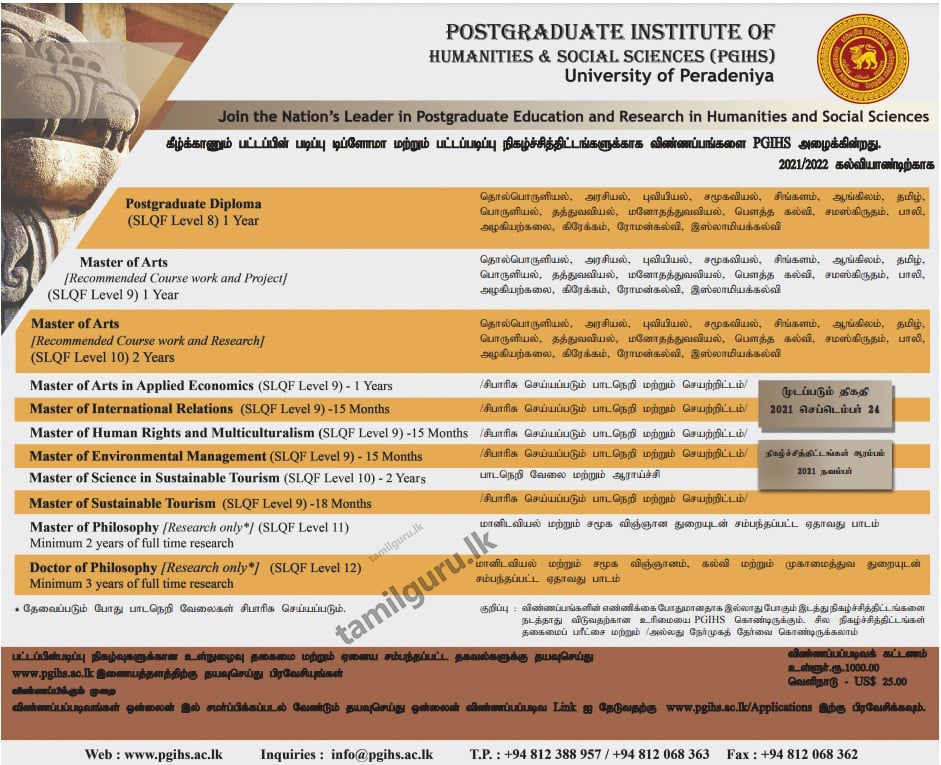 Conducted by University of Peradeniya, Postgraduate Institute of Humanities and Social Sciences (PGIHS)