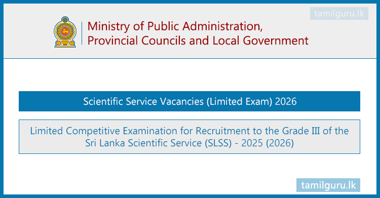 Calling for Applications – Limited Competitive Examination for Recruitment to the Grade III of the Sri Lanka Scientific Service (SLSS) – 2025 (2026)