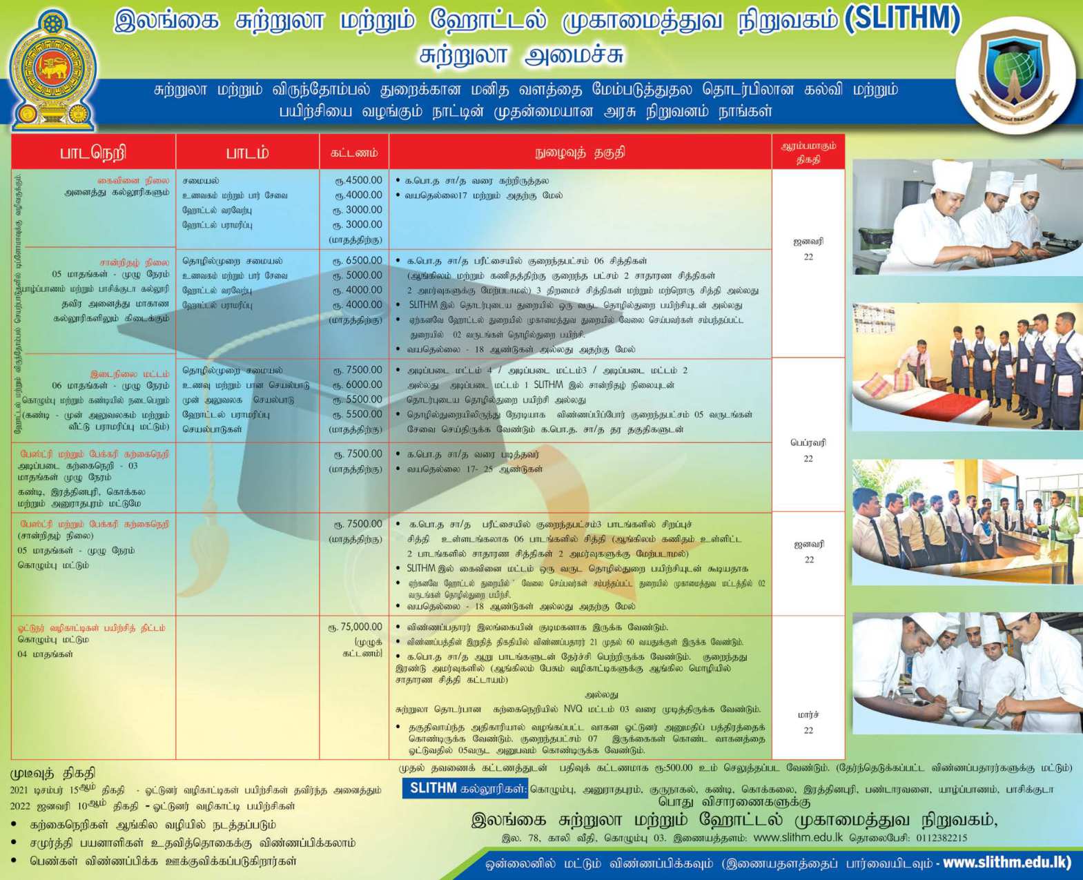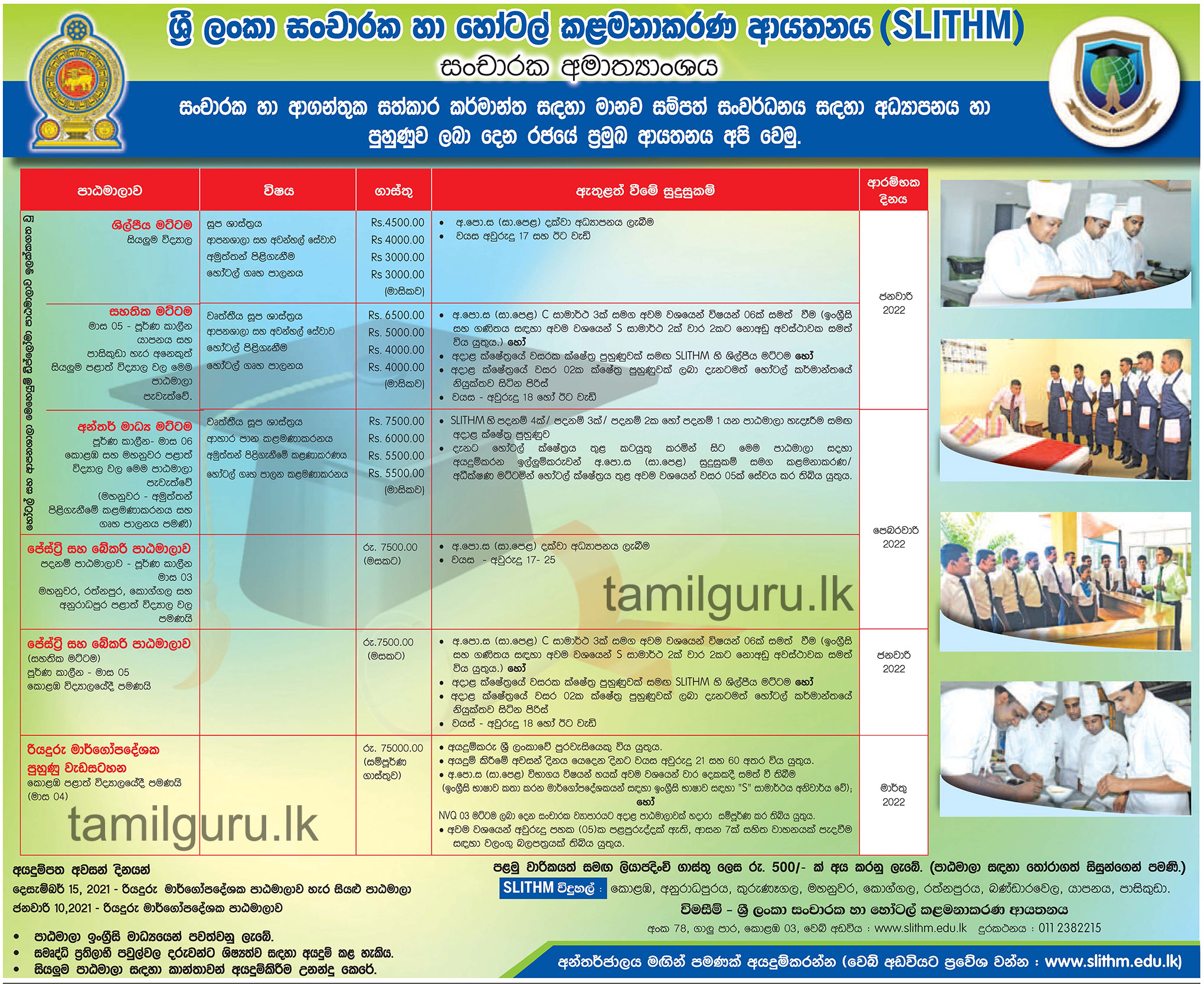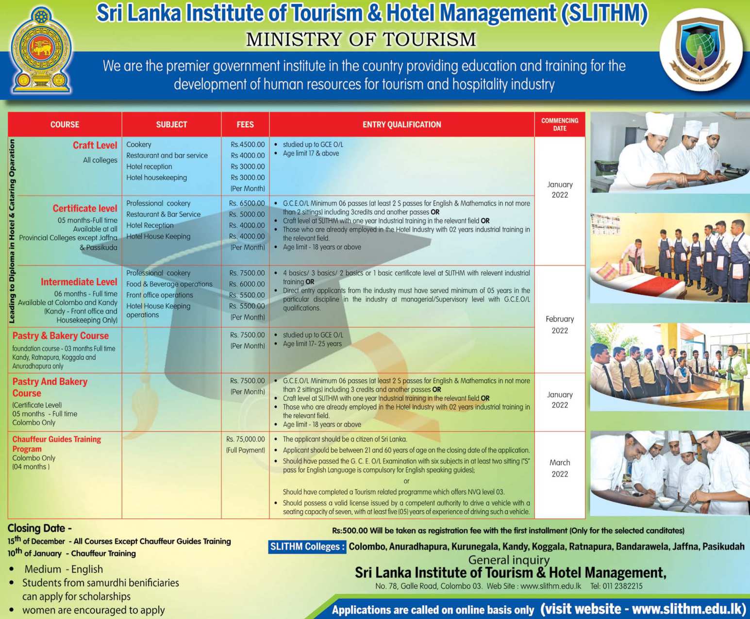Calling Applications for Courses at Sri Lanka Institute of Tourism and Hotel Management (SLITHM), Ministry of Tourism