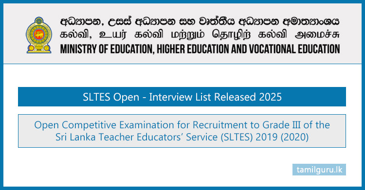 Open Competitive Examination for Recruitment to Grade III of the Sri Lanka Teacher Educators’ Service (SLTES) 2019 (2020)