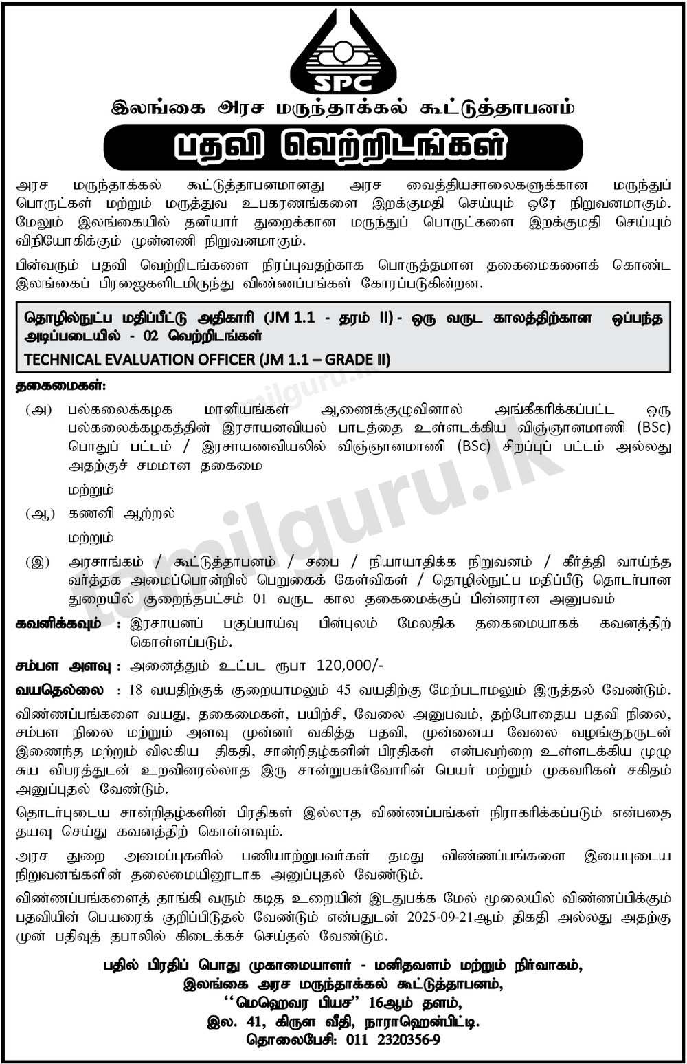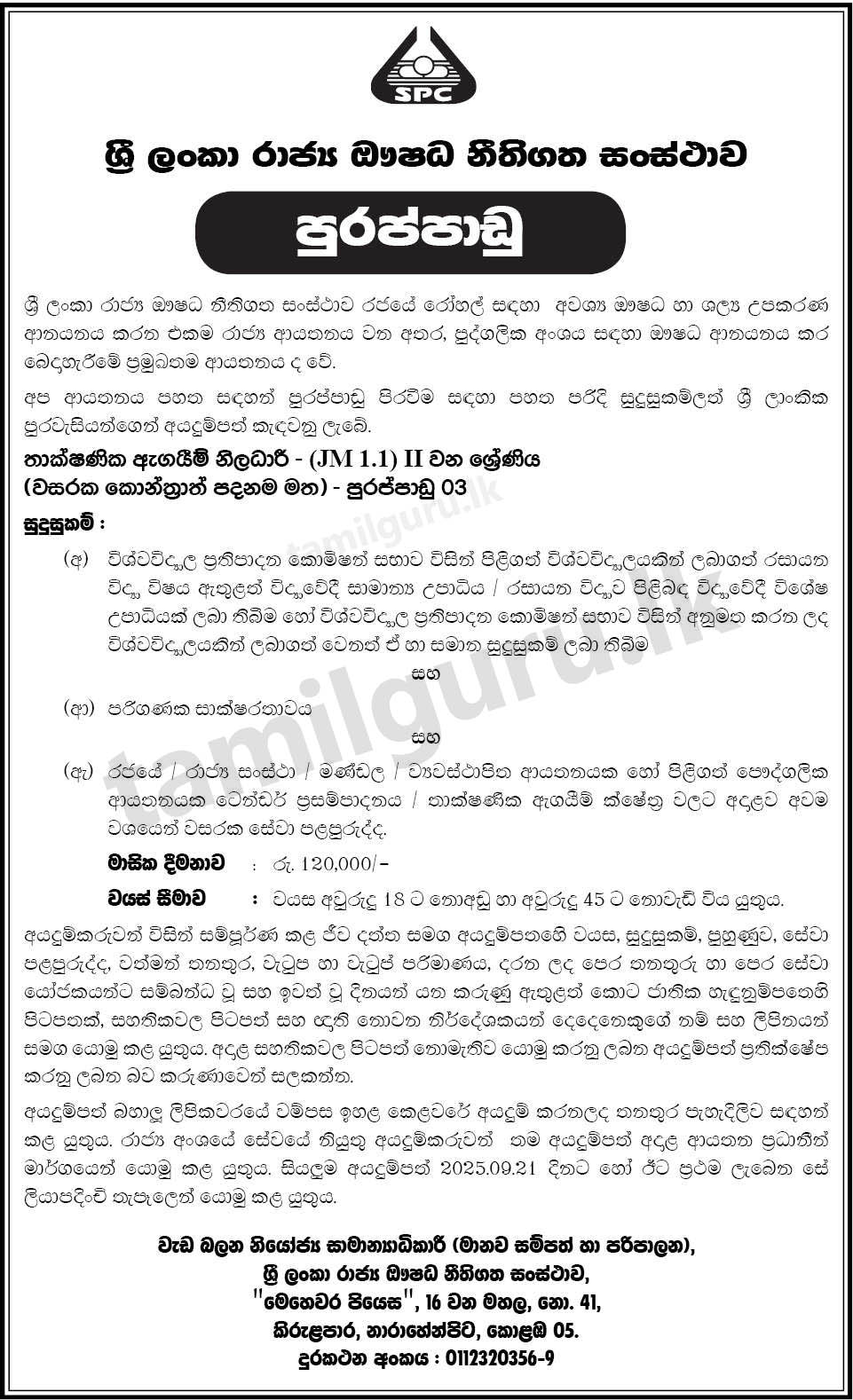 Job Vacancies at State Pharmaceuticals Corporation of Sri Lanka (SPC) – 2025 Septpember