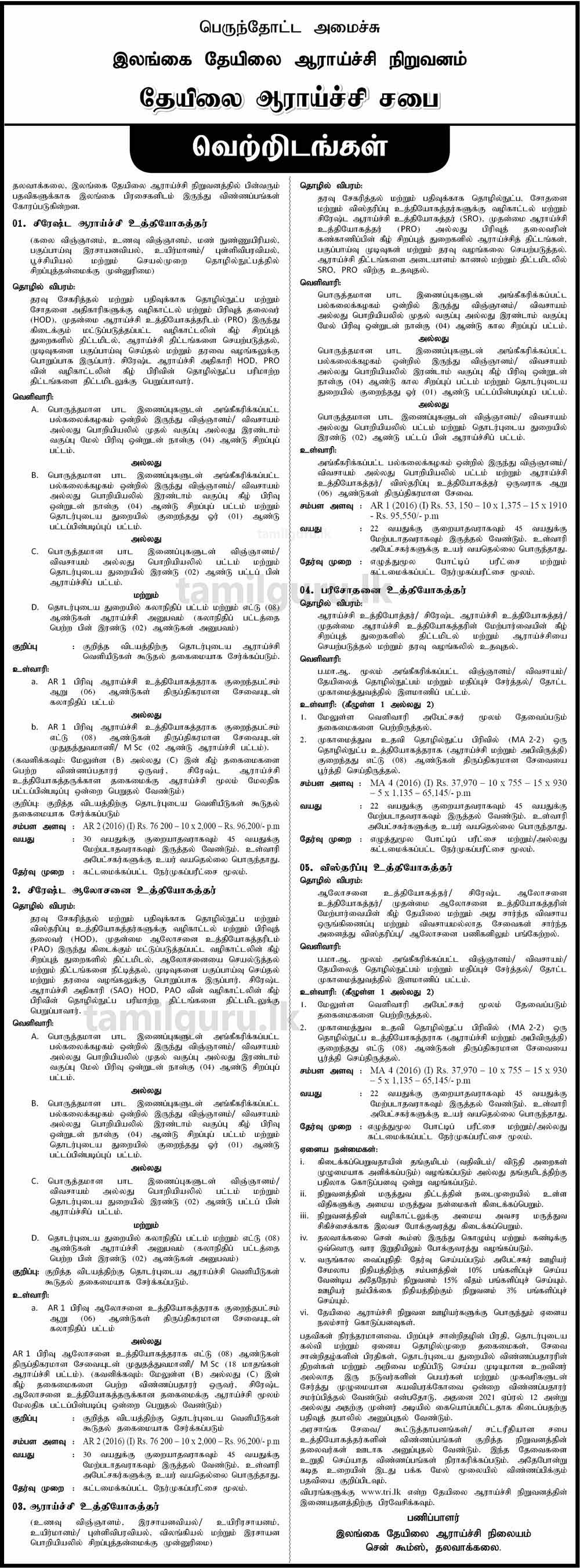 Calling Applications for Tea Research Institute of Sri Lanka Vacancies 2021 – Ministry of Plantation