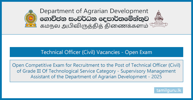 Technical Officer (Civil) Vacancies (Open Exam) 2025 - Department of Agrarian Development