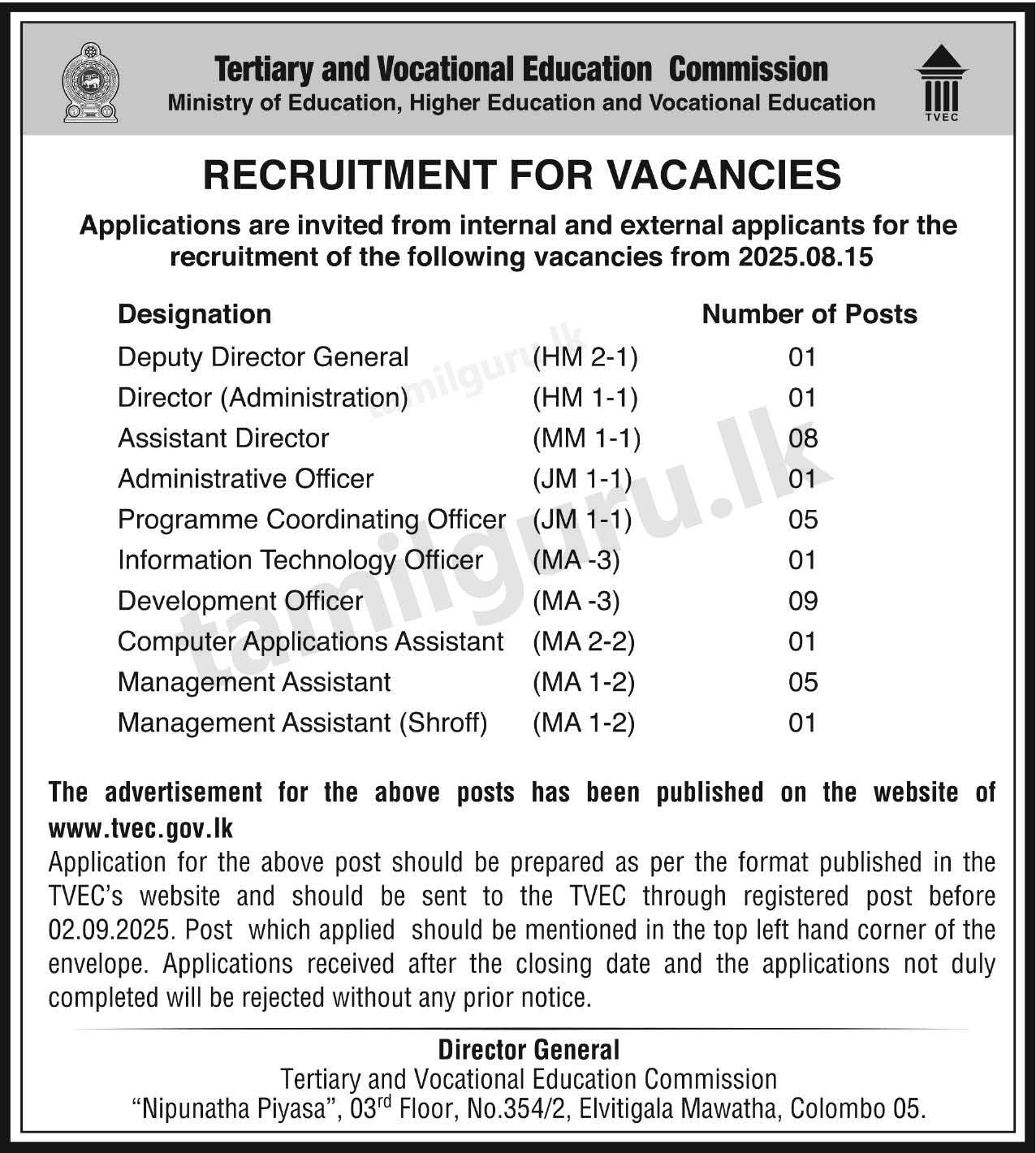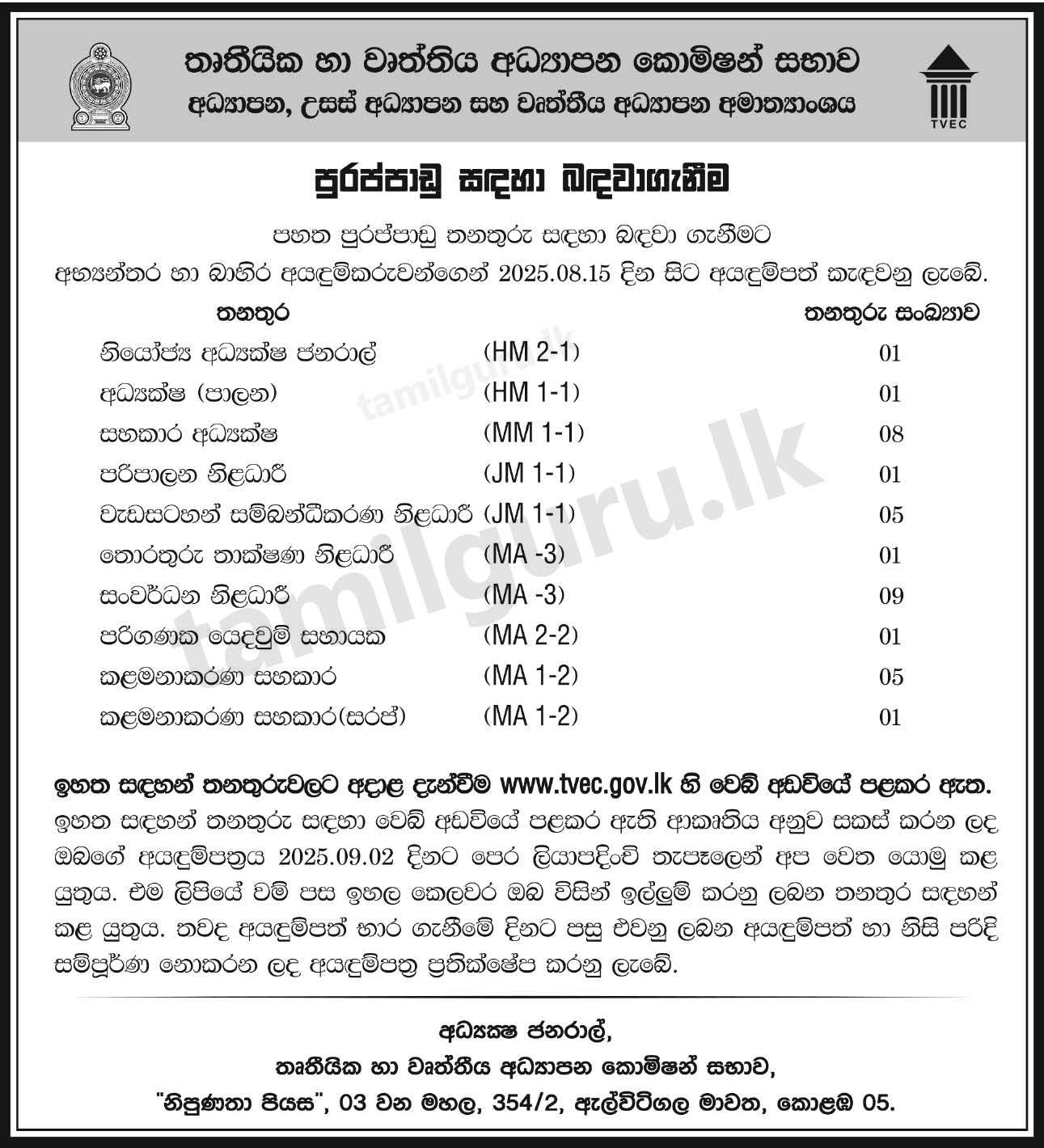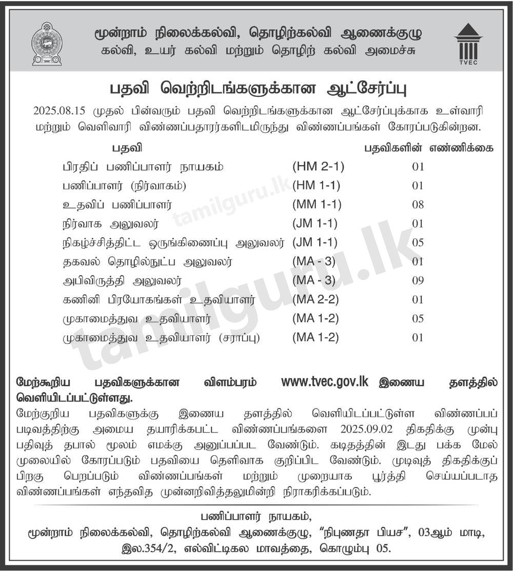 Job Vacancies at Tertiary and Vocational Education Commission (TVEC) – 2025 August / September