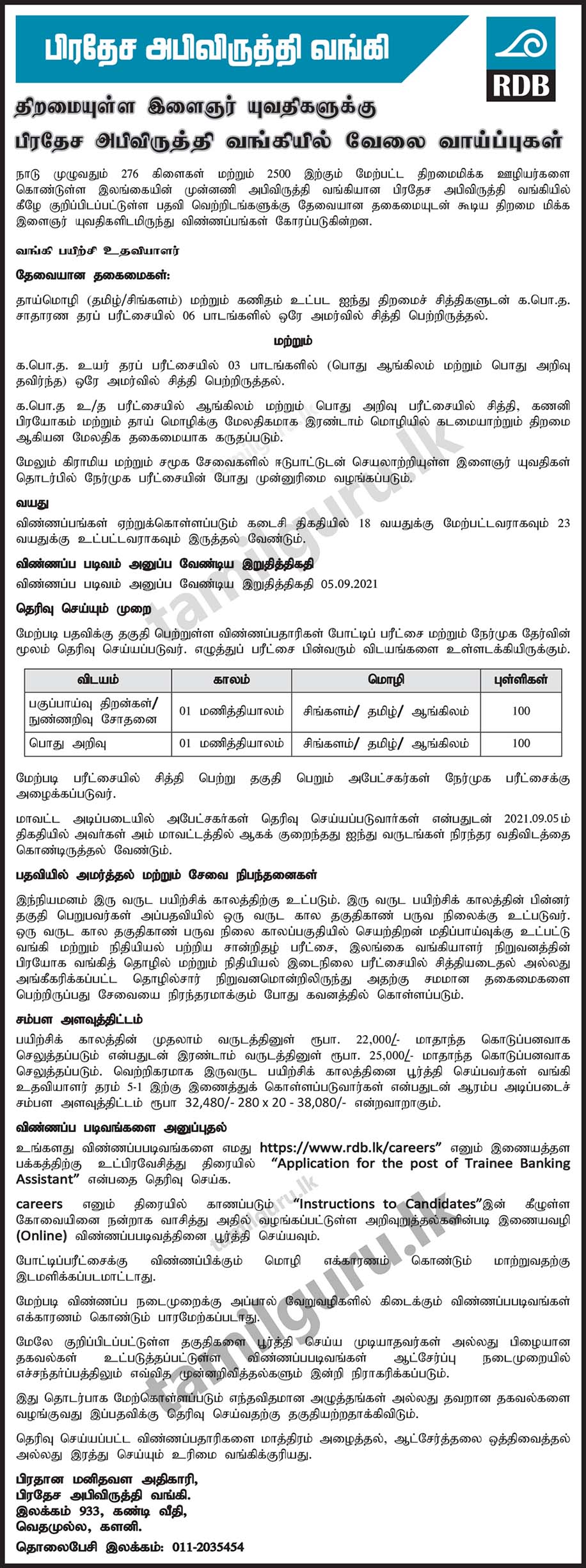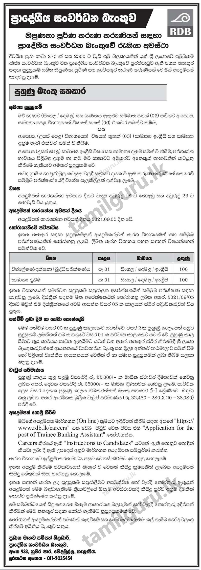 | Quick Link: https://www.rdb.lk/careers/ |