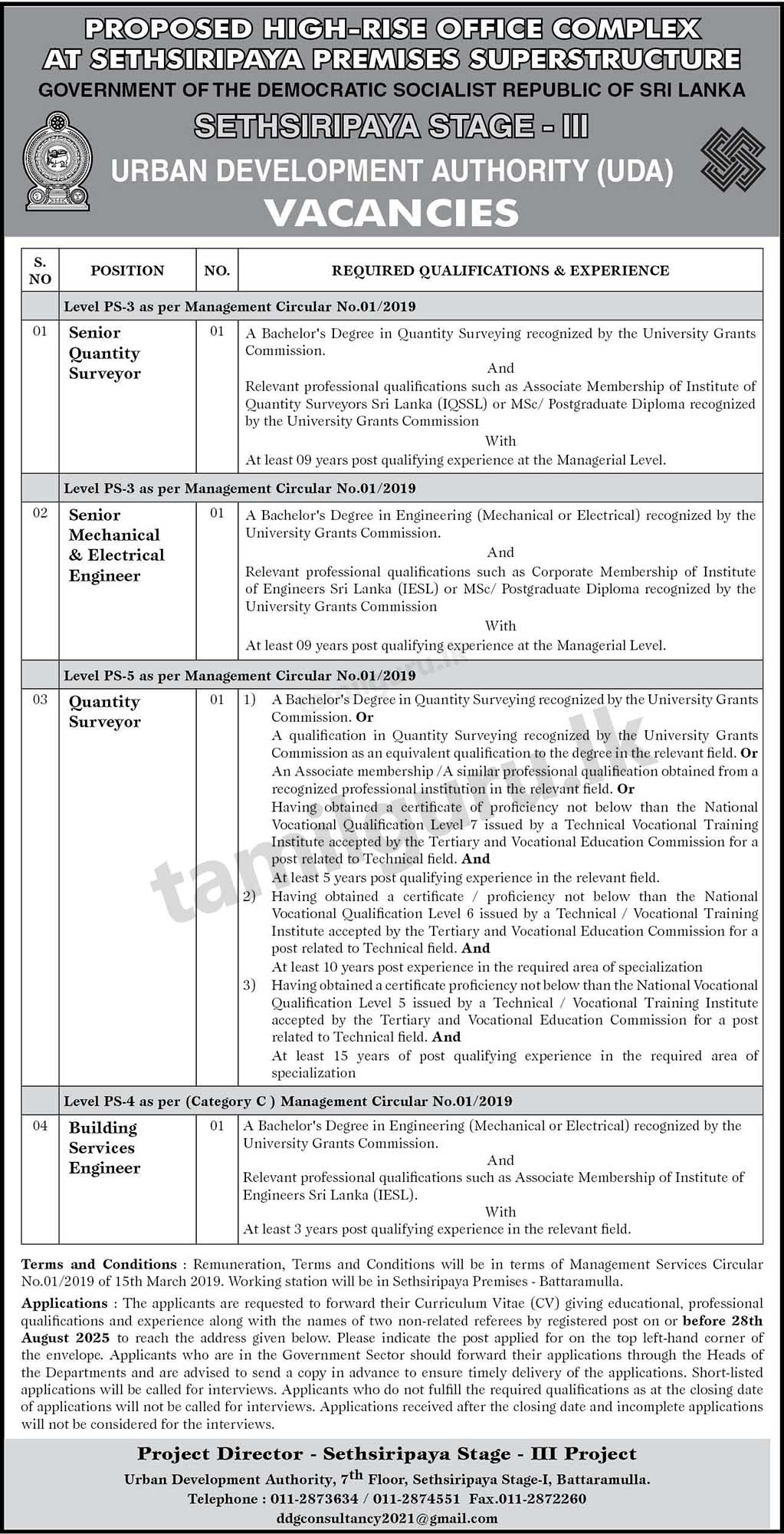Job Vacancies at Urban Development Authority (UDA) – 2025 August