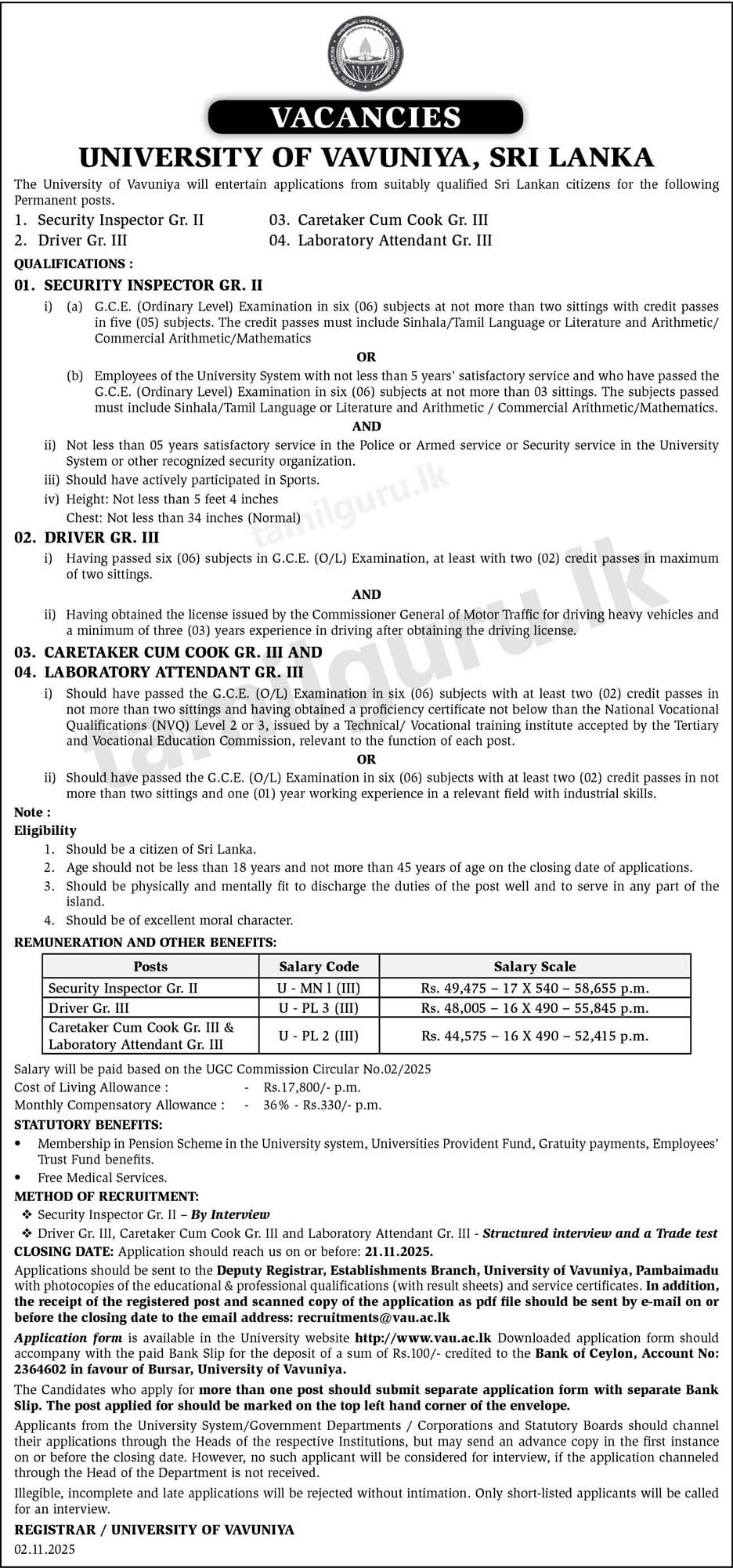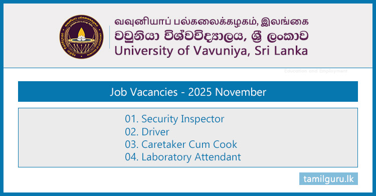 Job Vacancies at University of Vavuniya – 2025 November